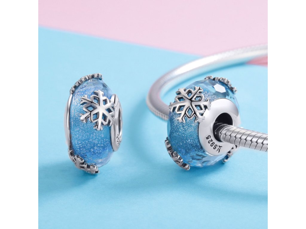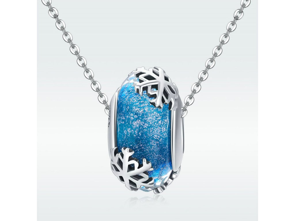Krásny strieborný prívesok / korálik Murano Ľadové kráľovstvo. Originálny design prívesku, kvalitné spracovanie a materiál, ručne dohotovené.