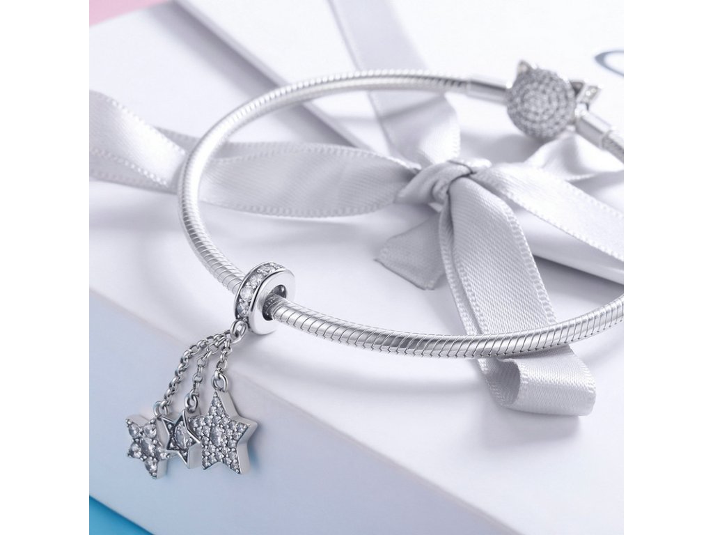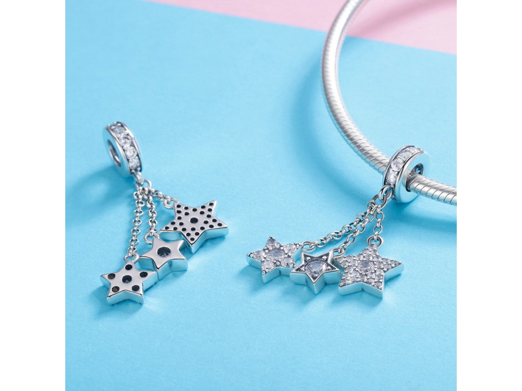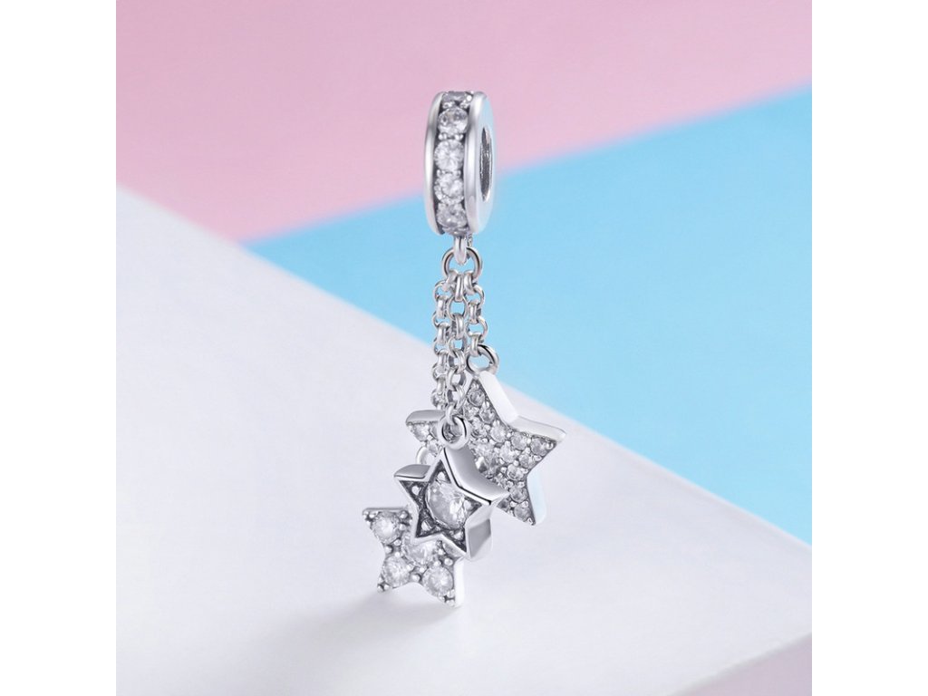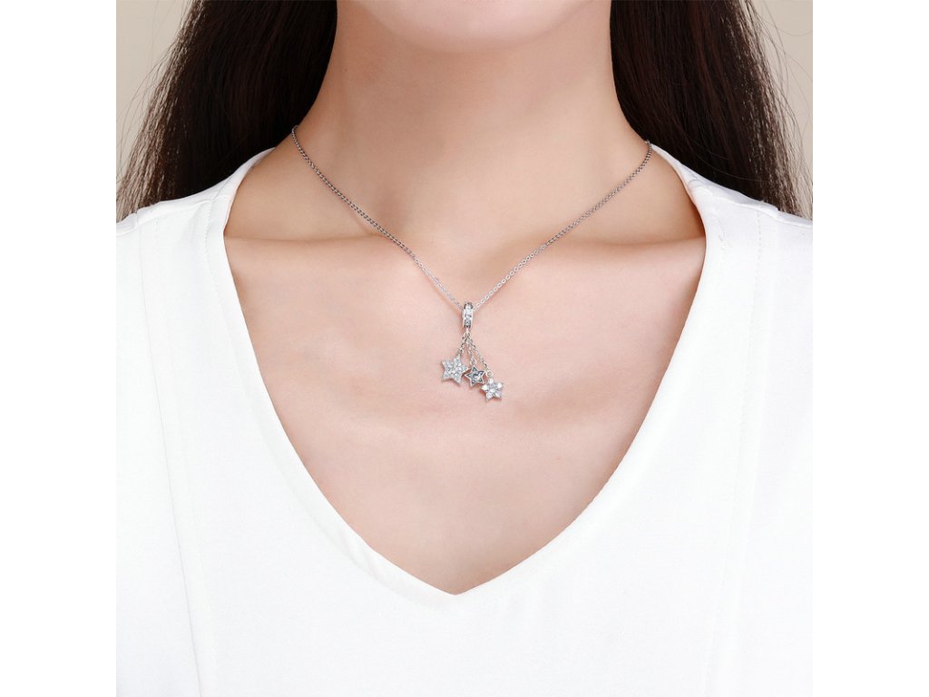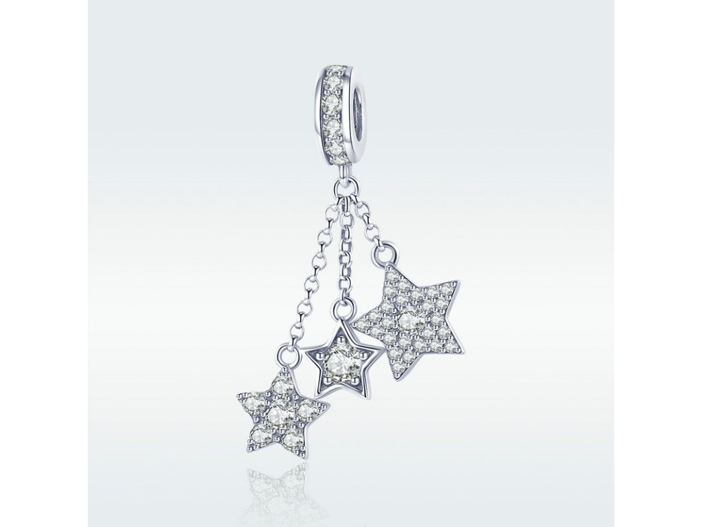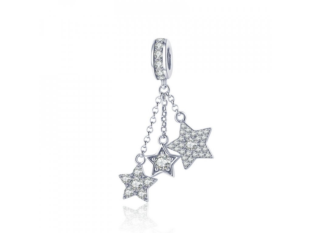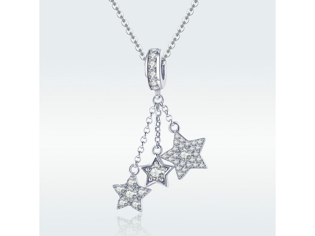 Luxusný a prepracovaný visiaci strieborný prívesok v dizajne padajúcich hviezd zdobený zirkónmi.