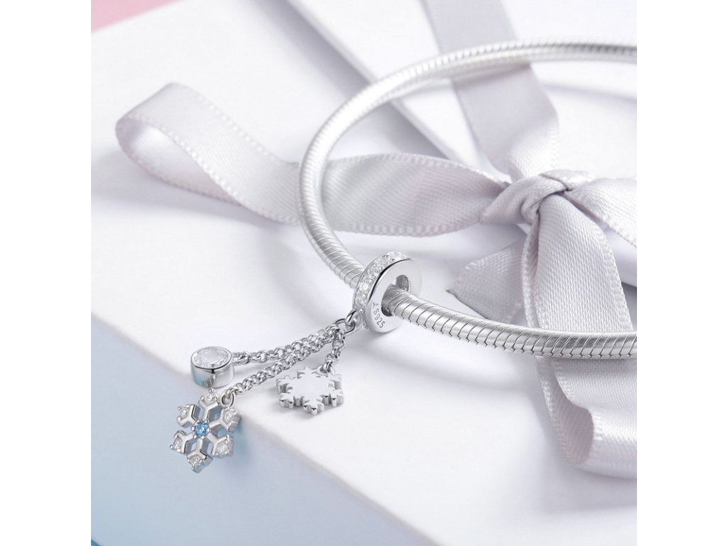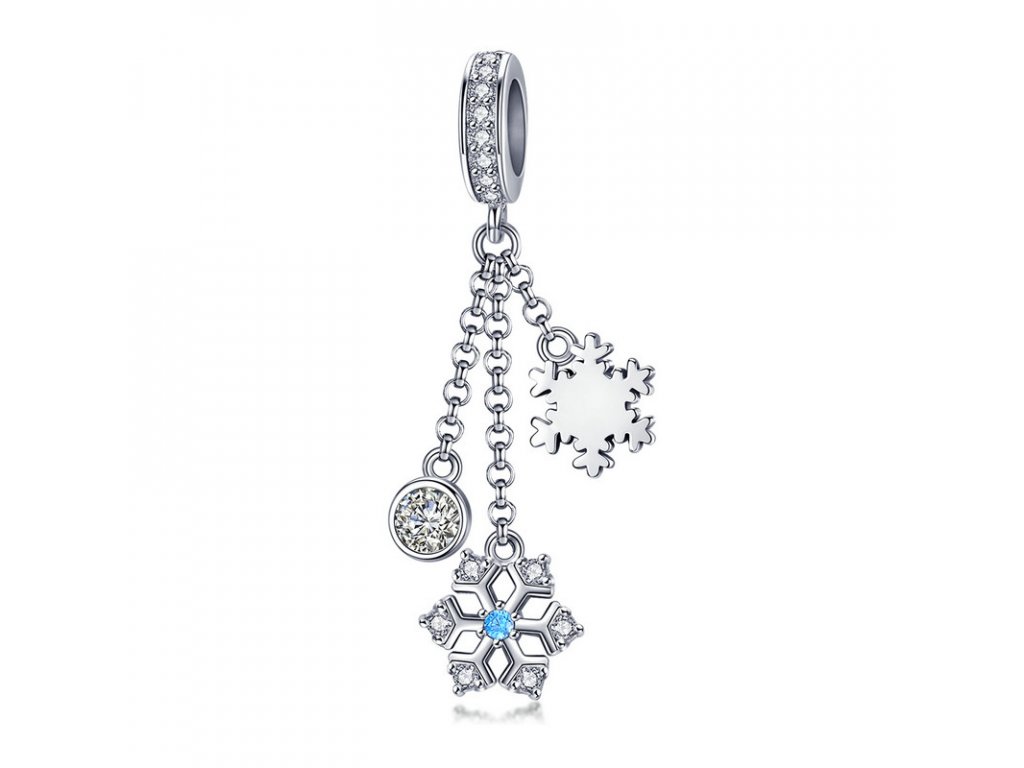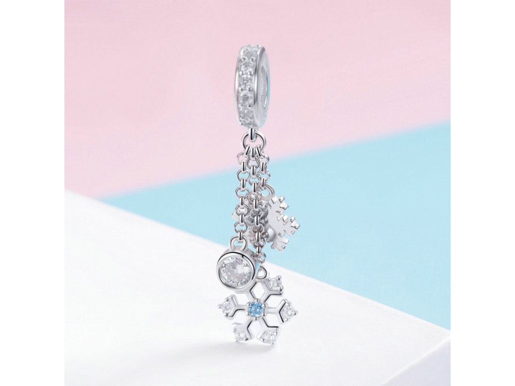 Elegantný strieborný visiaci prívesok v dizajne padajúcich snehových vločiek so zirkónmi čírej a tyrkysovej farby. Zlaďte prívesky s ostatnými šperkami značky Royal Fashion a vytvorte tak neodolateľný set. Originálny design prívesku, kvalitné spracovanie a materiál, ručne dohotovené.