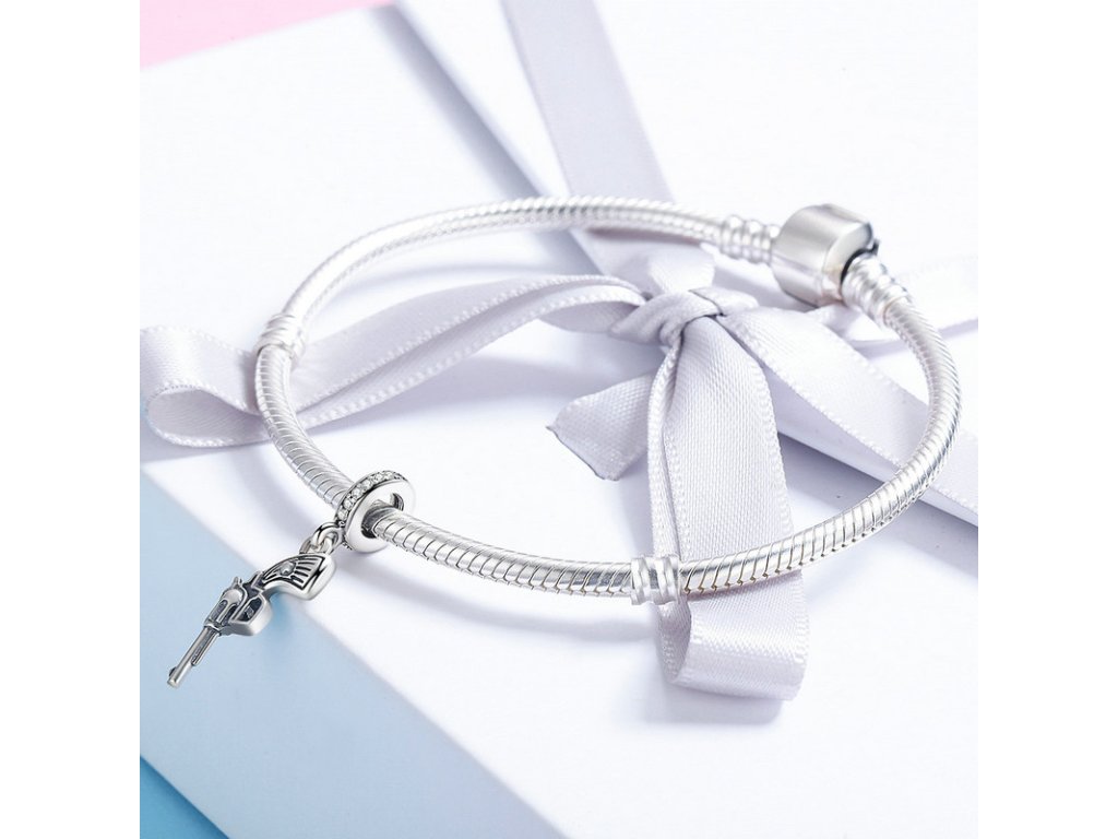 Prívesok v dizajne pištole zdobený trblietavými zirkónmi. Striebro 925/1000. Prívesky sú plne kompatibilné aj s náramkami iných značiek. DODÁVAME BALENÉ V DARČEKOVEJ KRABIČKE - ZADARMO !*