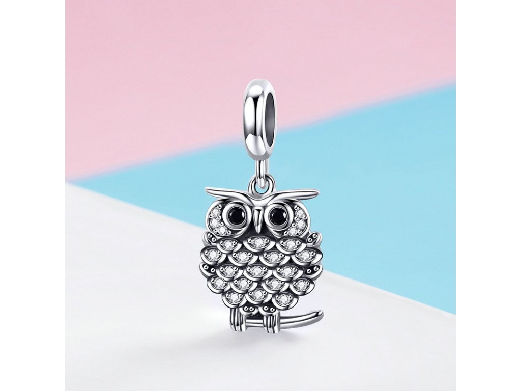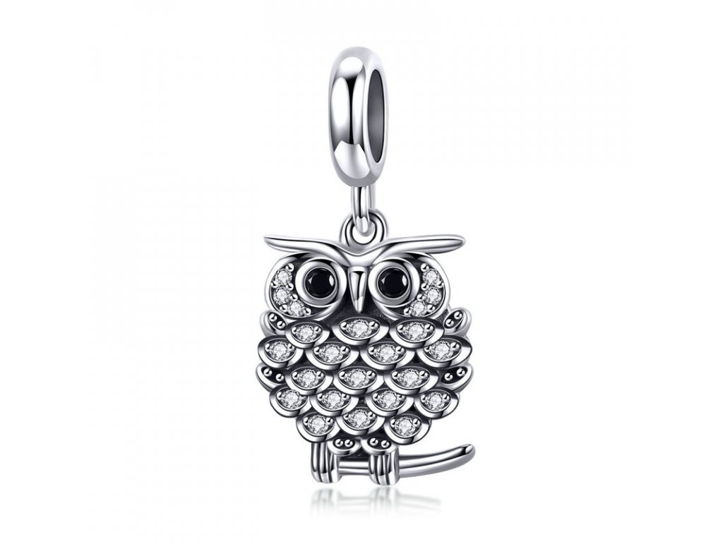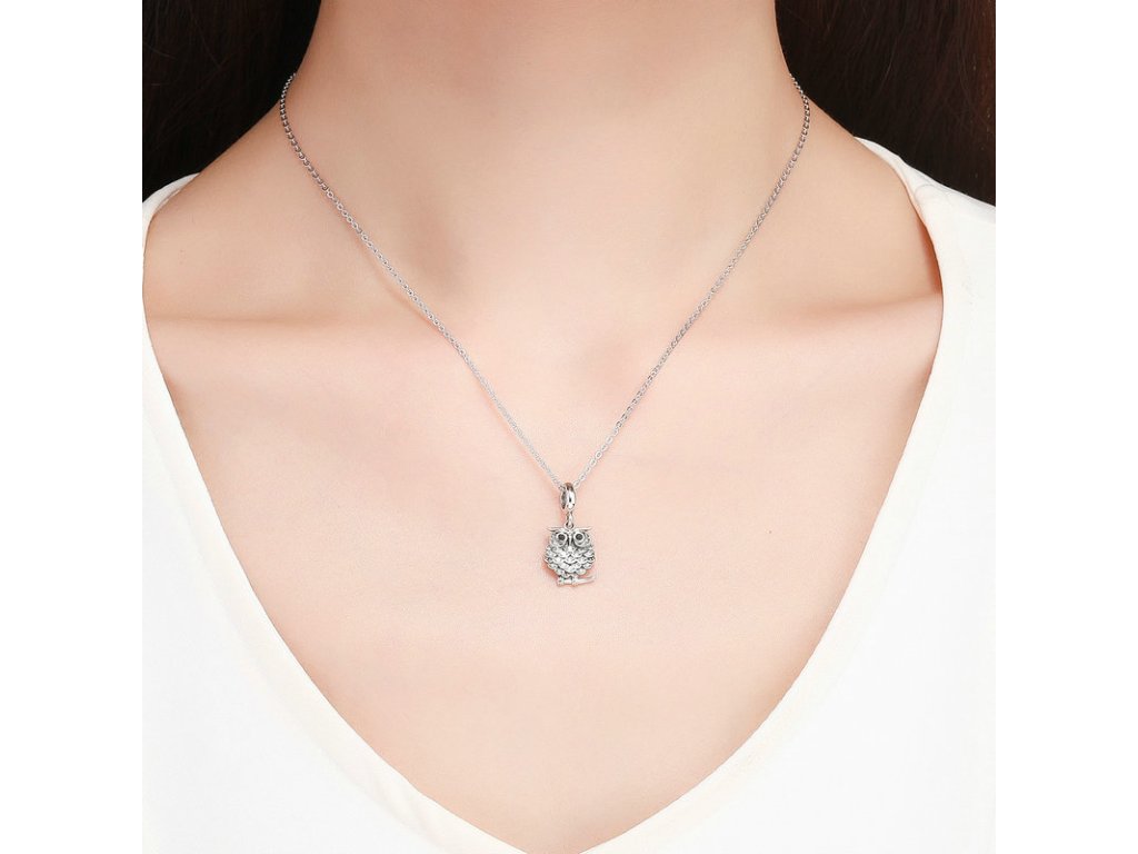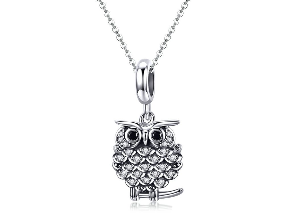 Krásny a prepracovaný strieborný prívesok zobrazujúci pôvabnú sovu, ktorá je zdobená čiernymi a čírymi zirkónmi. Originálny design prívesku, kvalitné spracovanie a materiál, ručne dohotovené.