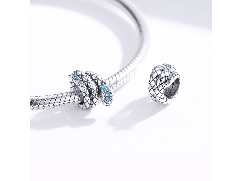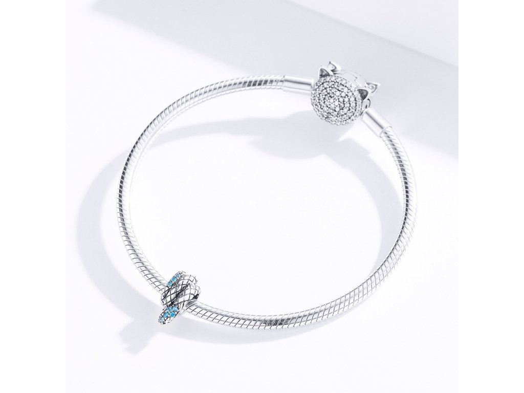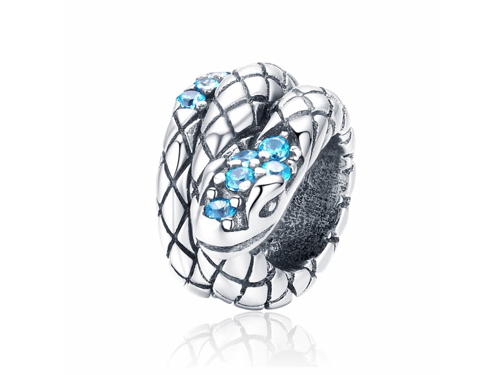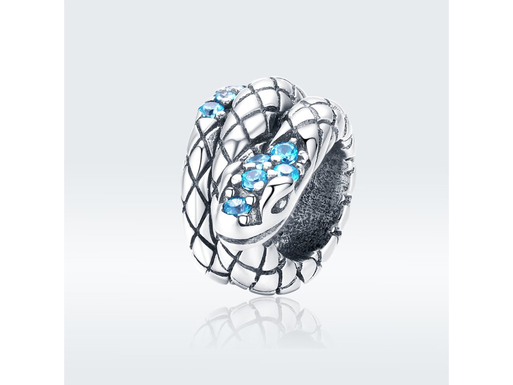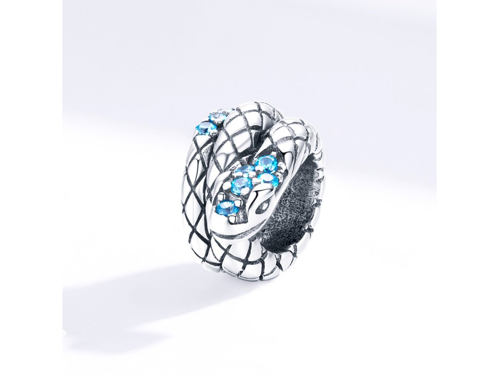 - Strieborný prívesok v dizajne Rozprávkového hada zdobeného smaltom a modrými zirkónmi. Originálny design prívesku, kvalitné spracovanie a materiál, ručne dohotovené.