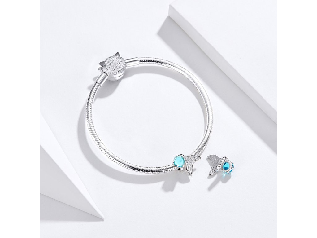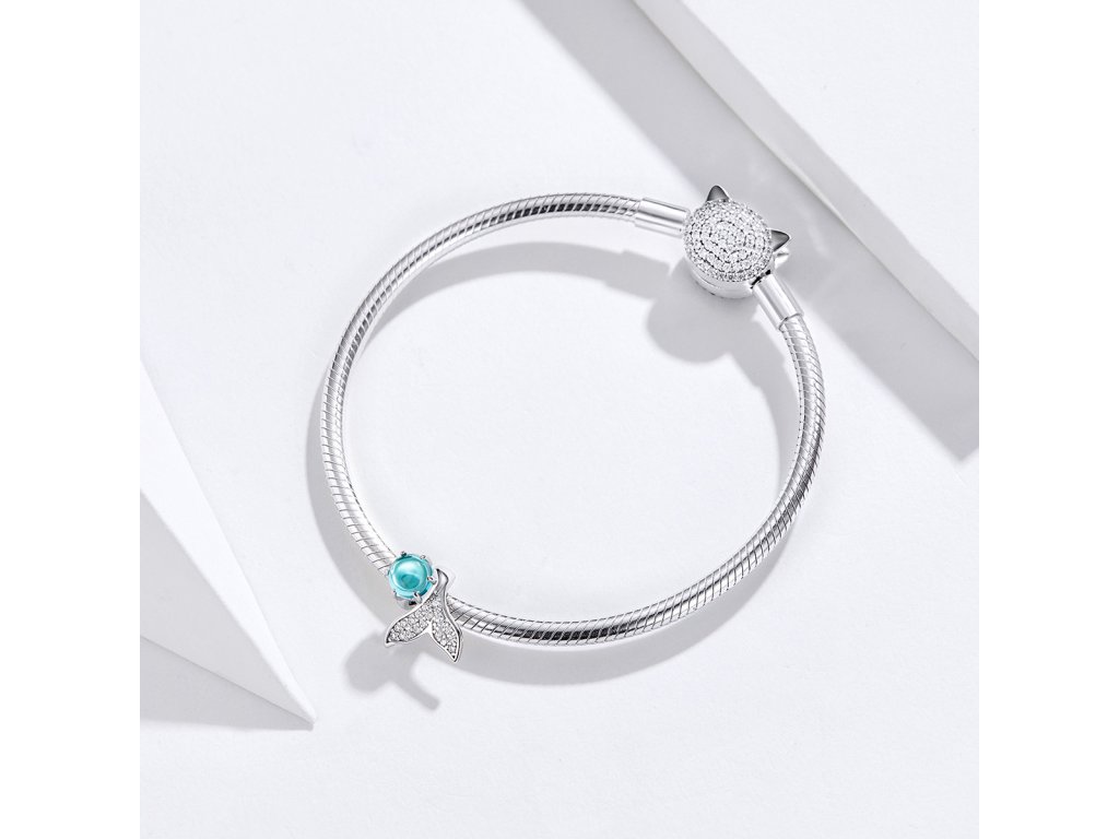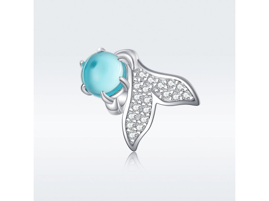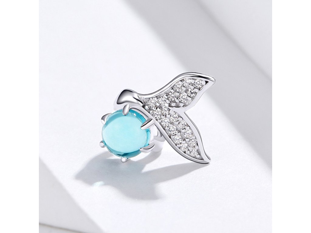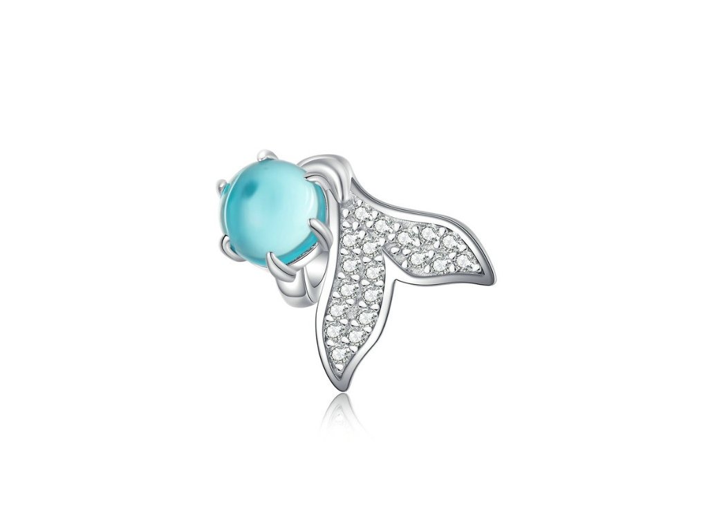 Strieborný prívesok v dizajne Morského sveta zdobený jedným veľkým tyrkysovým kameňom a miniatúrnymi trblietavými čírymi zirkónmi, ktoré zdobia plutvu bájnej morskej panny. Originálny design prívesku, kvalitné spracovanie a materiál, ručne dohotovené.