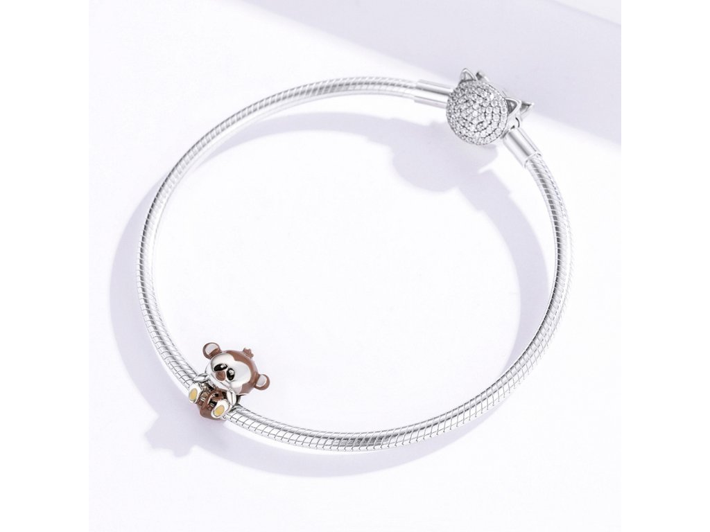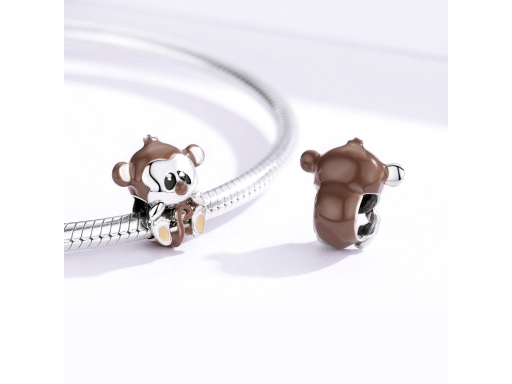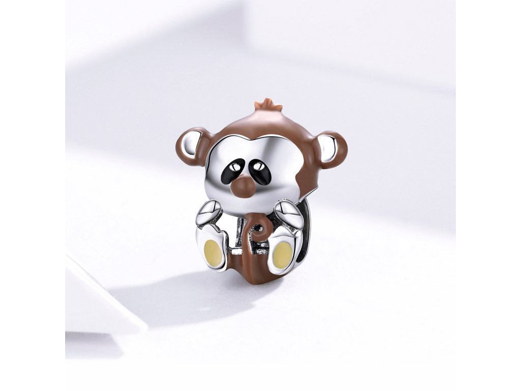 - Strieborný prívesok v dizajne Roztomilé opičky s chocholkou zdobený ručne nanášanou hnedou glazúrou. Originálny design prívesku, kvalitné spracovanie a materiál, ručne dohotovené.
