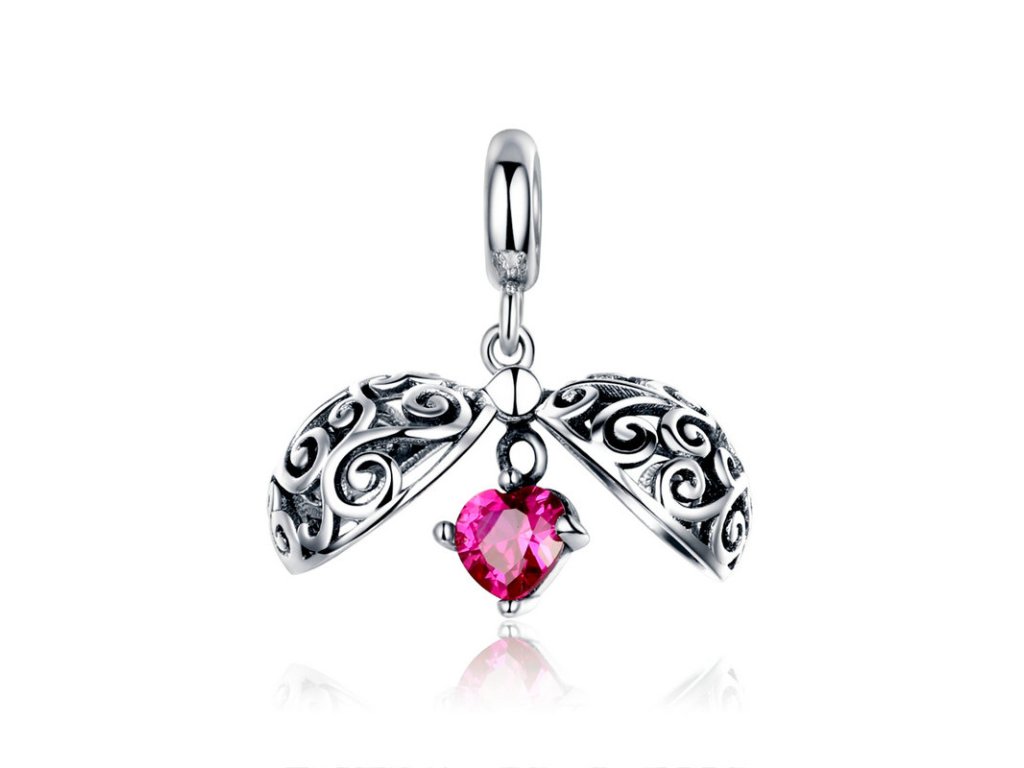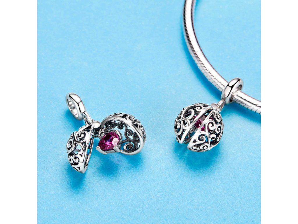 Strieborný otvárací prívesok v dizajne sladkej lásky, ktorý v sebe skrýva zirkón v tvare srdca. Originálny design prívesku, kvalitné spracovanie a materiál, ručne dohotovené.