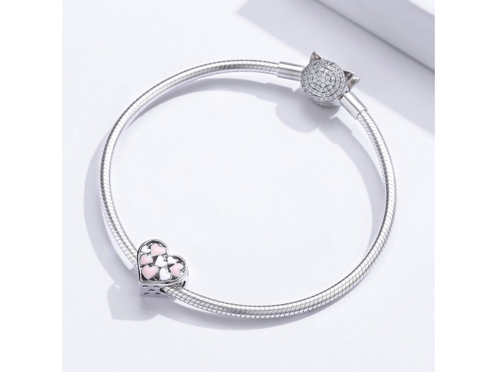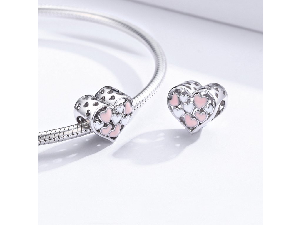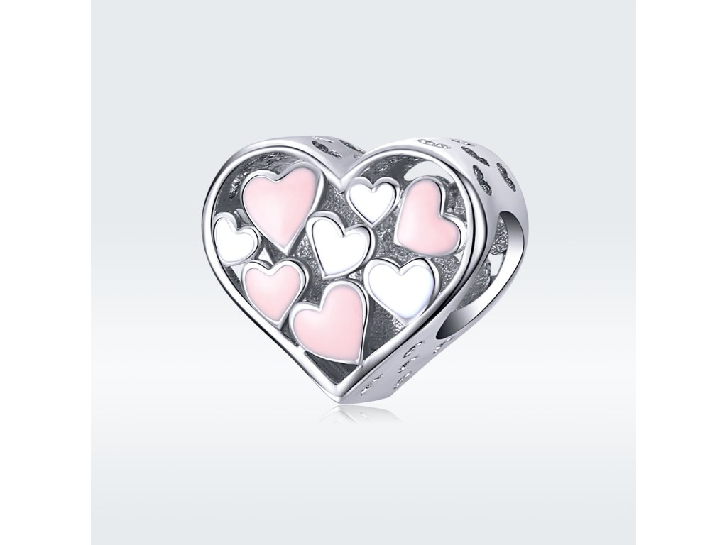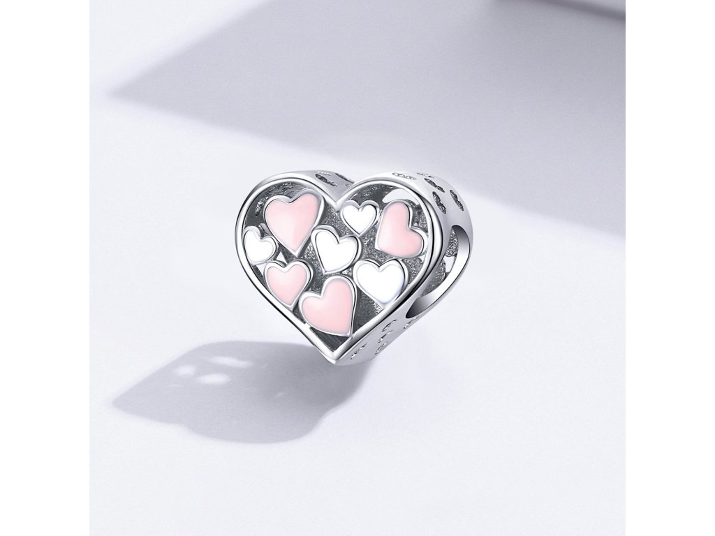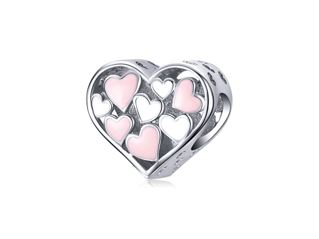 - Strieborný prívesok v dizajne Sladkej lásky zdobený z oboch strán srdiečkami s bielou a ružovou ručne nanášanou glazúrou. Prívesok je tiež zdobený ručne vyrezávanými mini srdiečkami po stranách. Originálny design prívesku, kvalitné spracovanie a materiál, ručne dohotovené.