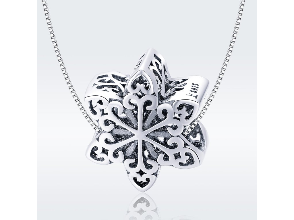 Prívesok v dizajne snehovej vločky zdobený dokonalými ornamentmi. Striebro 925/1000. Prívesky sú plne kompatibilné aj s náramkami iných značiek. DODÁVAME BALENÉ V DARČEKOVEJ KRABIČKE - ZADARMO !*