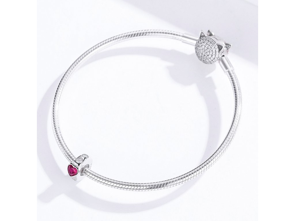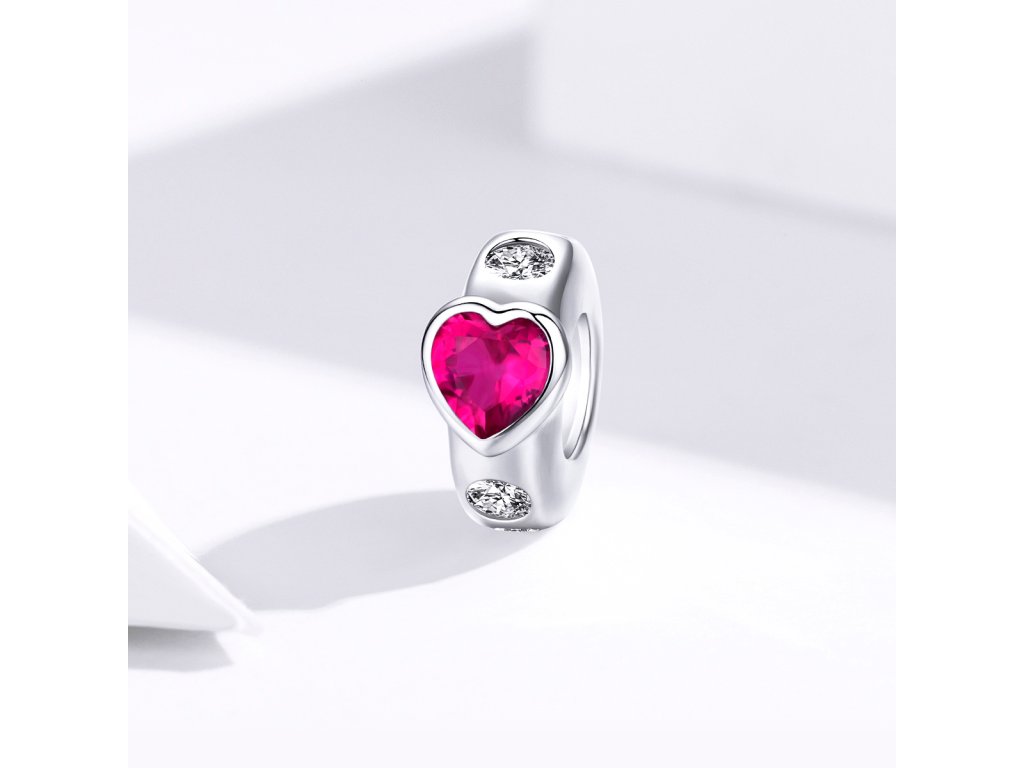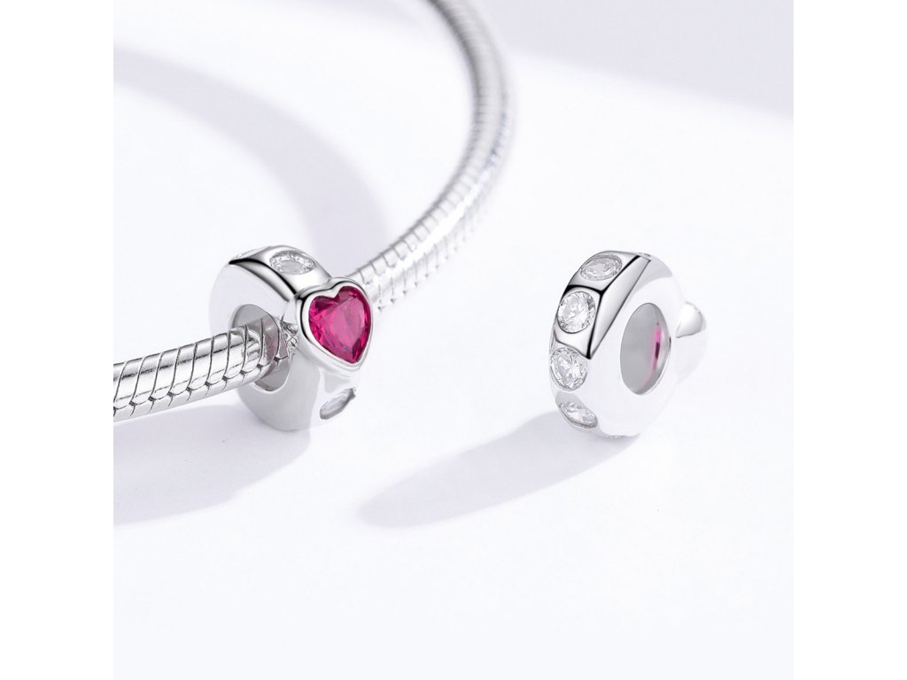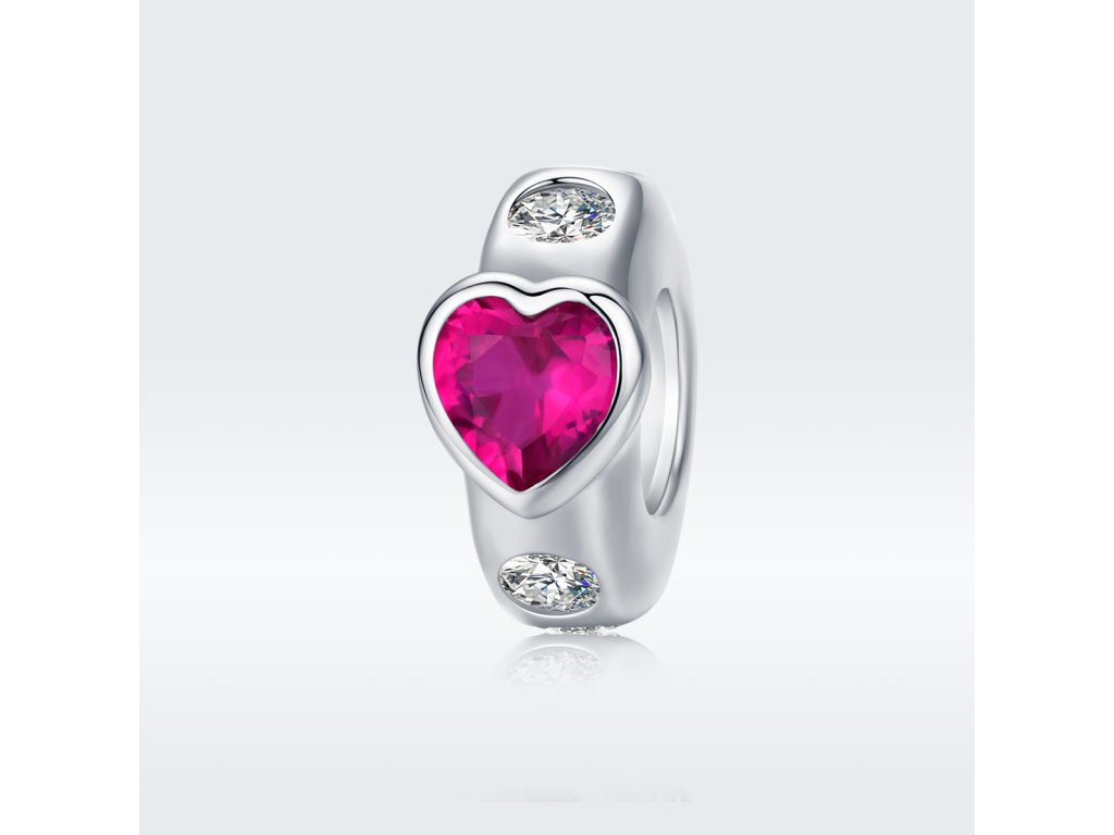 - Strieborný prívesok / spacer v dizajne Čerešňovo červeného srdca zdobený čírymi trblietavými zirkónmi po celom svojom obvode. Originálny design prívesku, kvalitné spracovanie a materiál, ručne dohotovené.