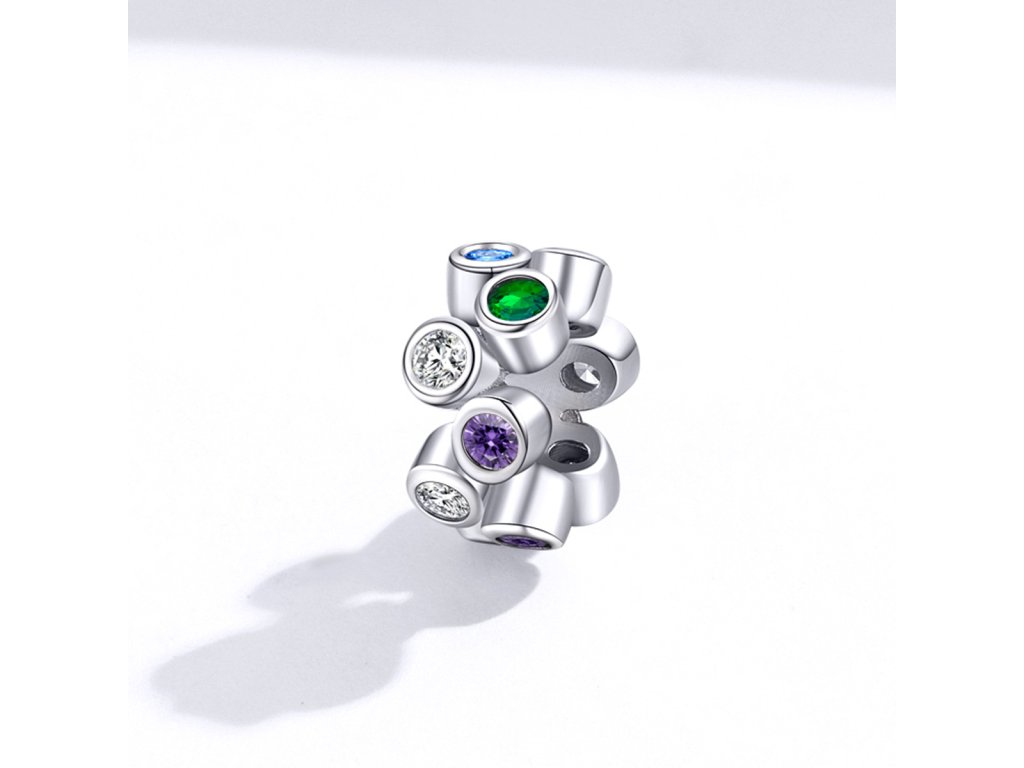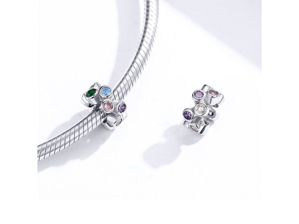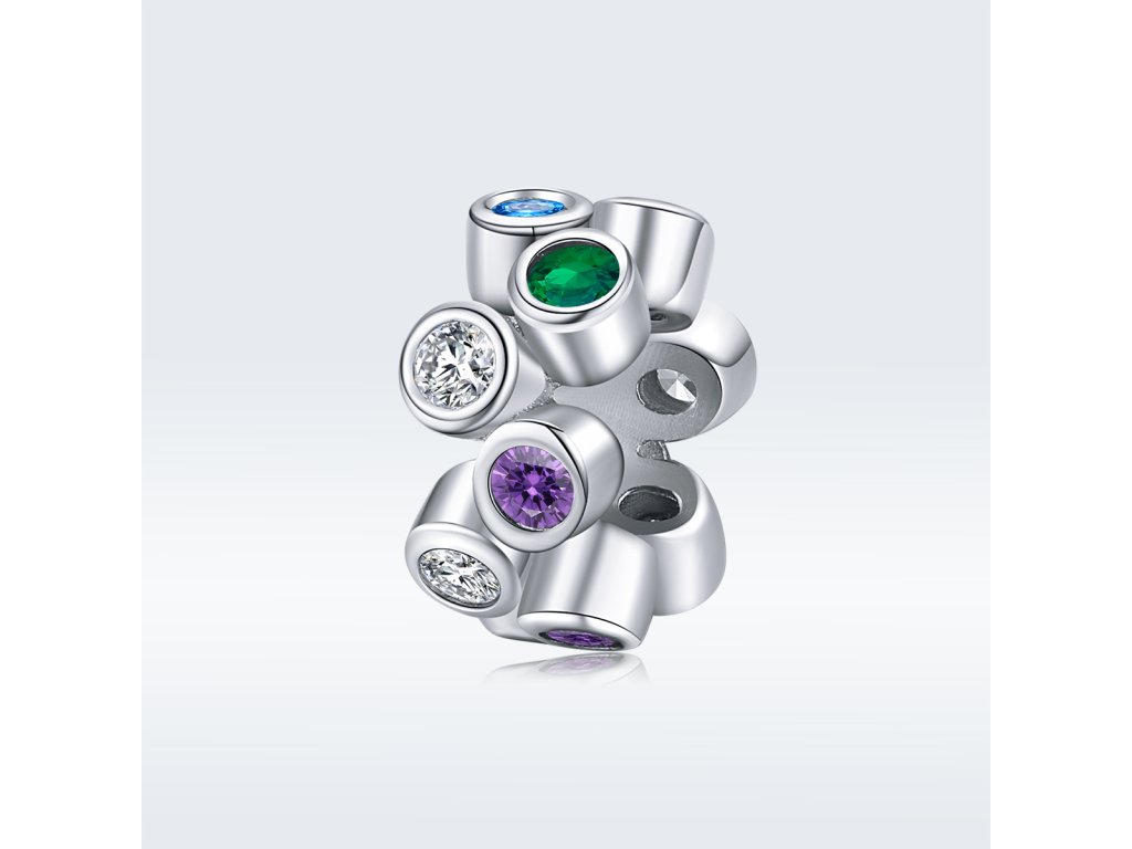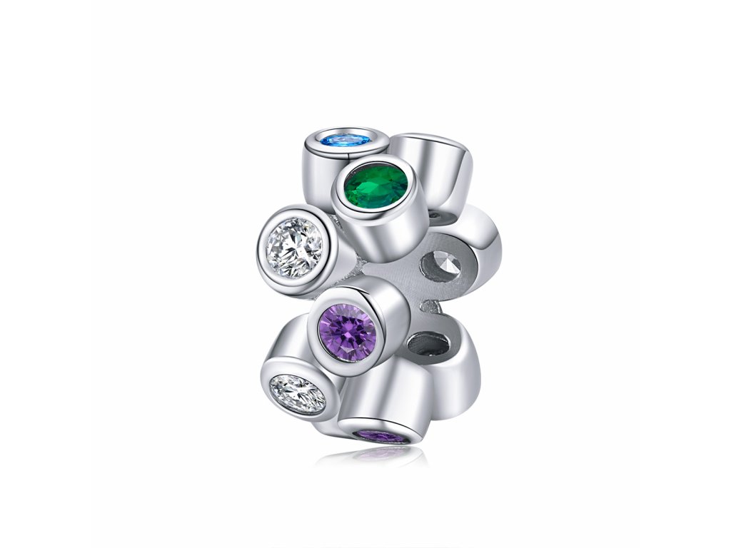 - Strieborný prívesok / spacer v dizajne Farebného kúzla zdobeného kameňmi v podobe rôzne farebných zirkónov. Originálny design prívesku, kvalitné spracovanie a materiál, ručne dohotovené.