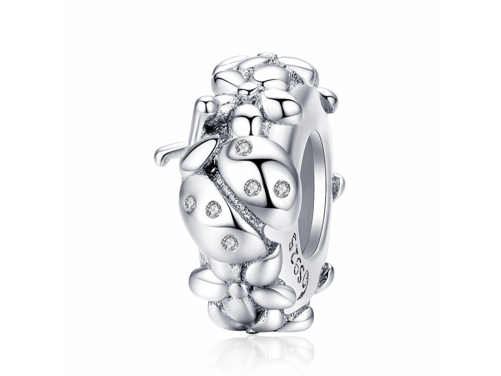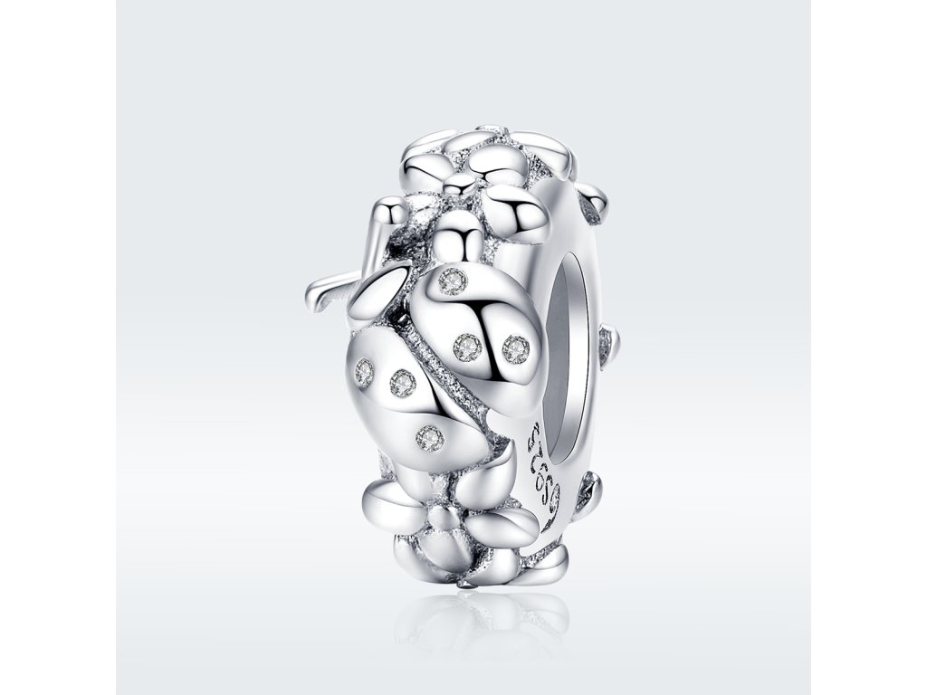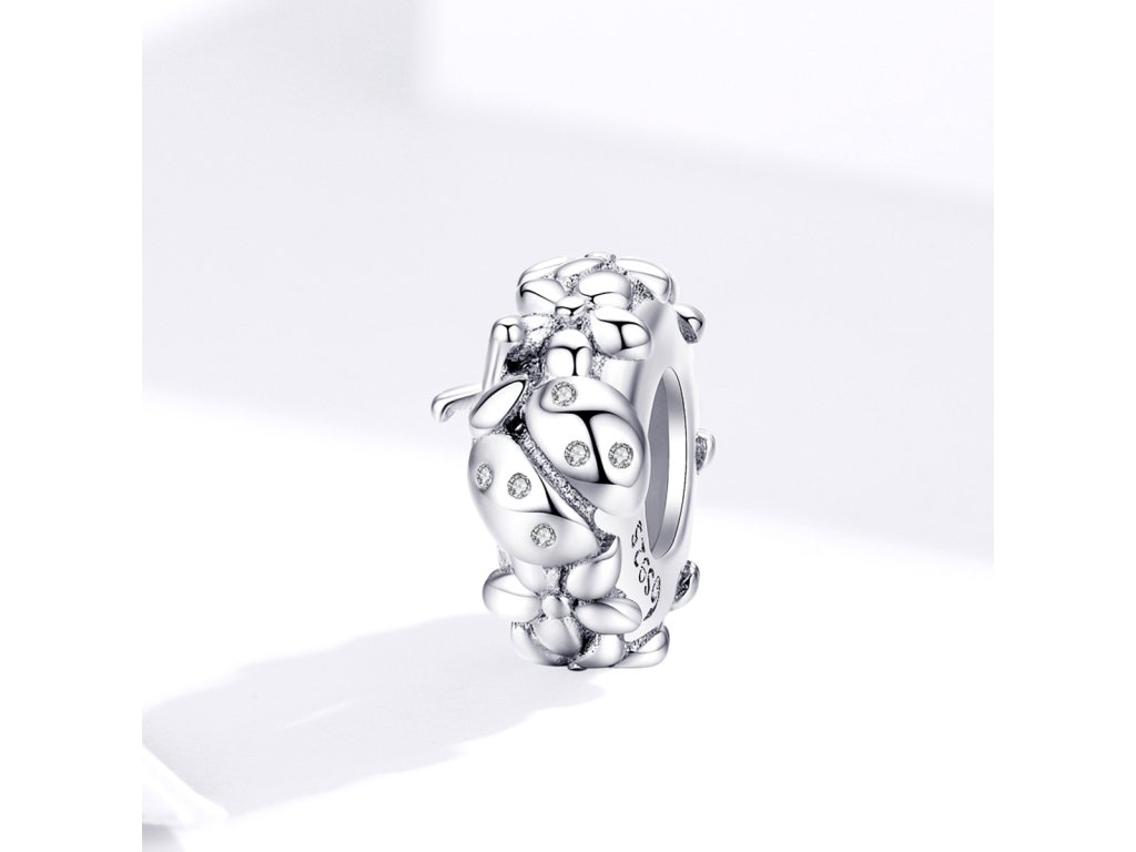Strieborný prívesok / spacer v dizajne Lienka na lúke zdobený čírymi trblietavými zirkónmi. Originálny design prívesku, kvalitné spracovanie a materiál, ručne dohotovené.