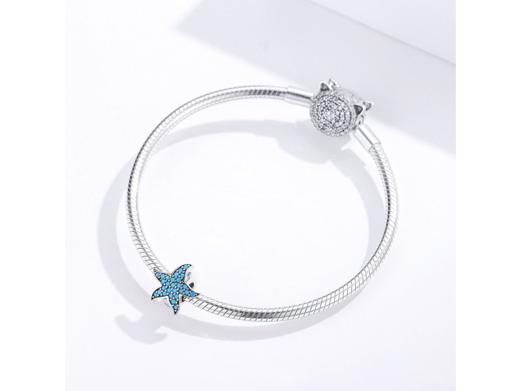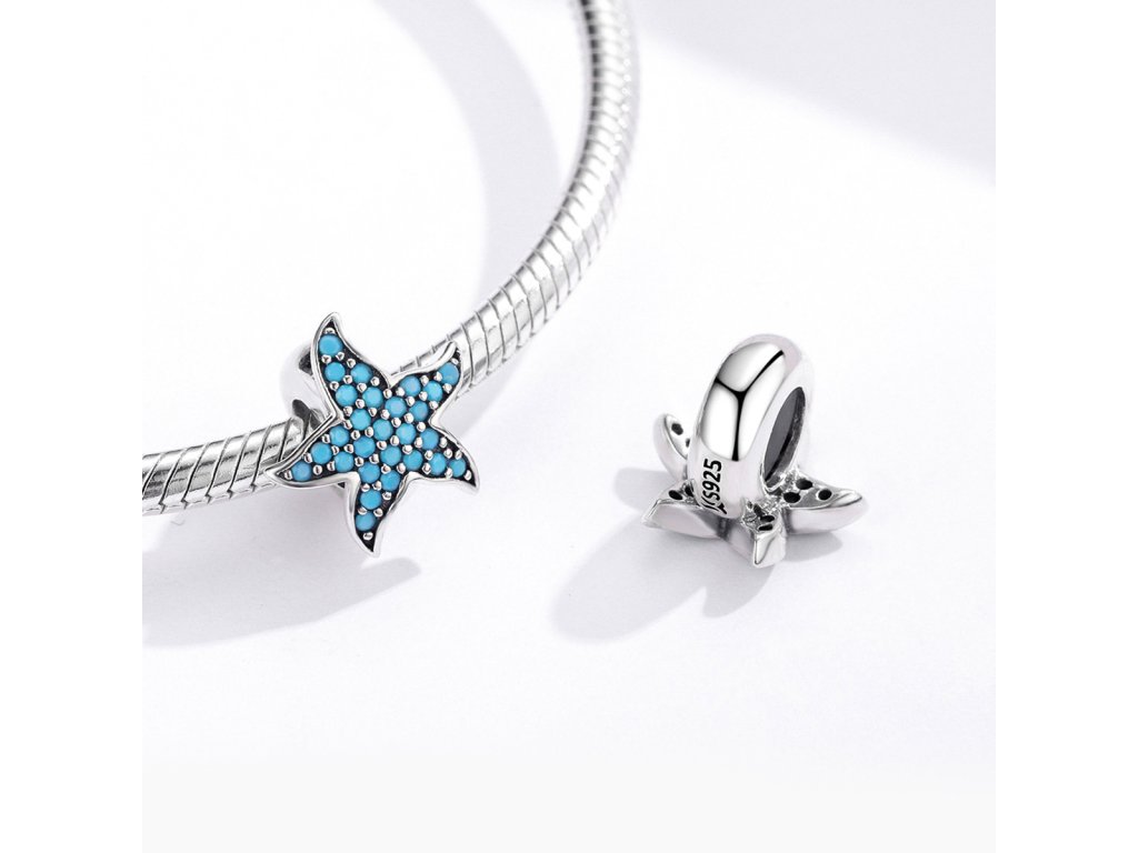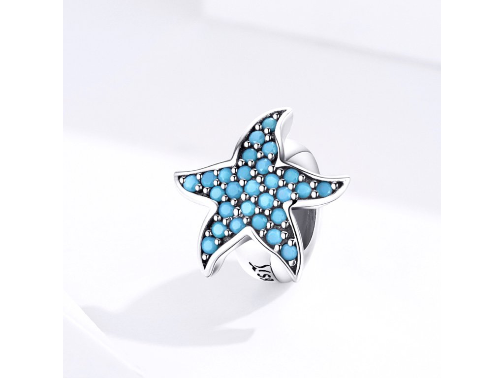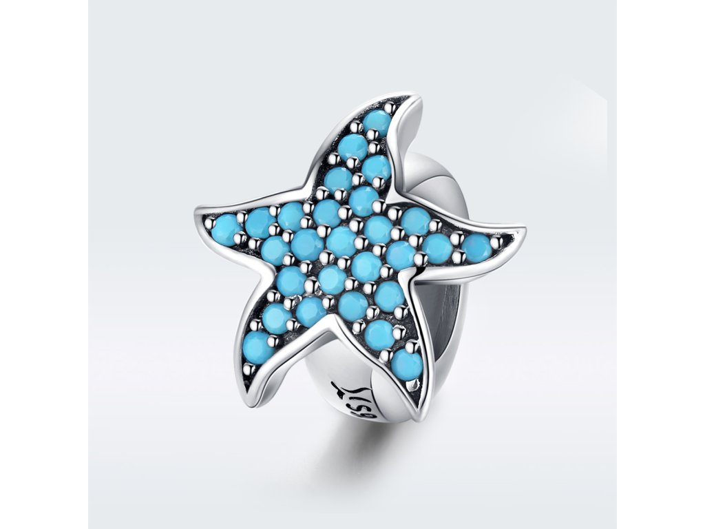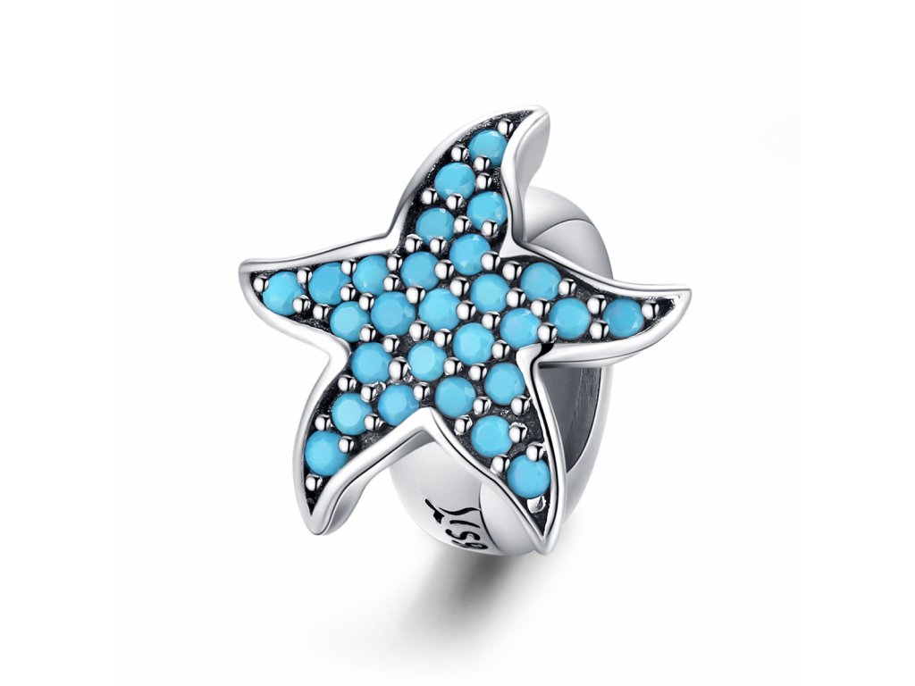 - Strieborný prívesok / spacer v dizajne Morské hviezdice zdobené tyrkysovými zirkónmi. Originálny design prívesku, kvalitné spracovanie a materiál, ručne dohotovené.