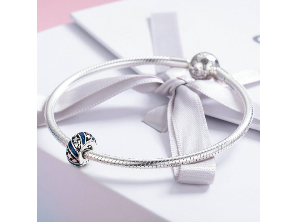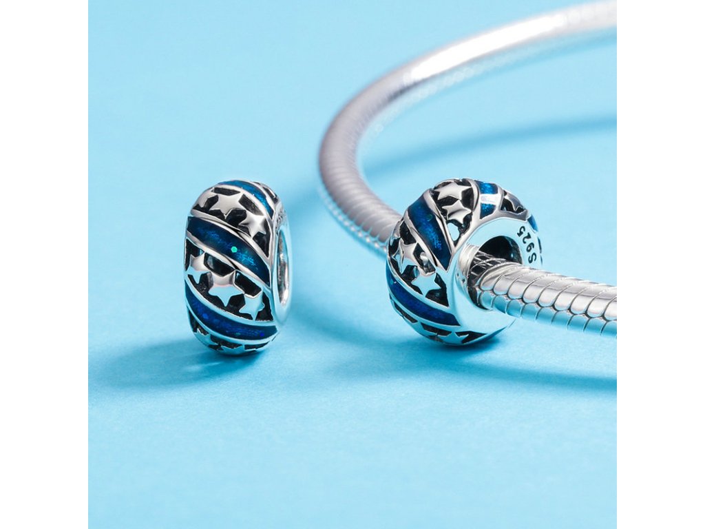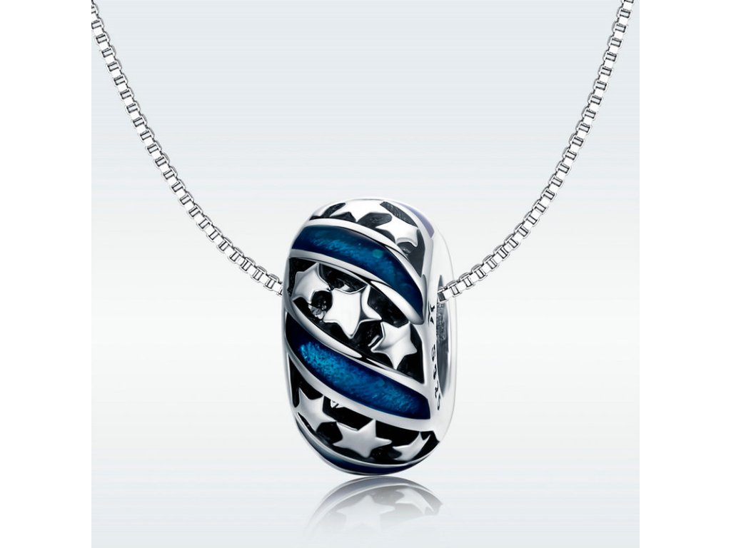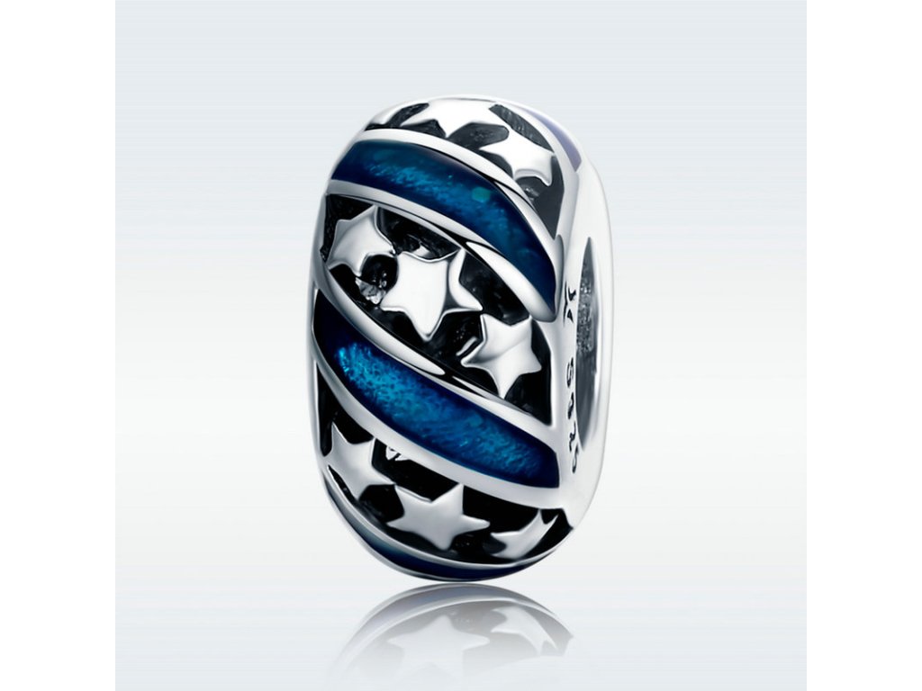 Luxusná a prepracovaná korálka v dizajne nočnej oblohy zdobená hviezdičkami a ručne nanášaná tmavo modrou glazúrou. Obdarujte seba alebo svojich blízkych týmto strieborným kúzlom. Originálny design prívesku, kvalitné spracovanie a materiál, ručne dohotovené.