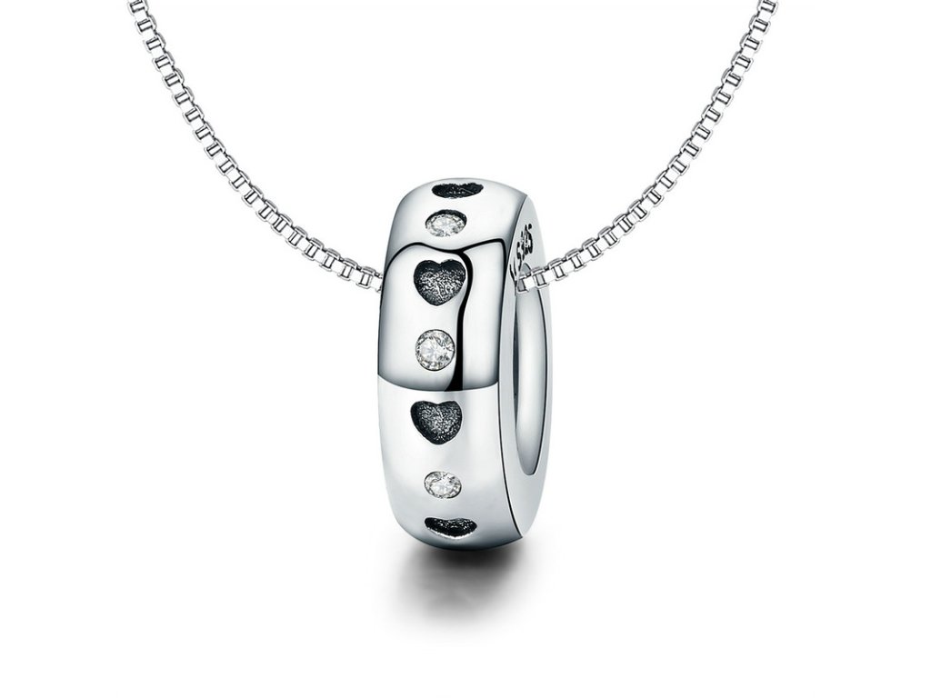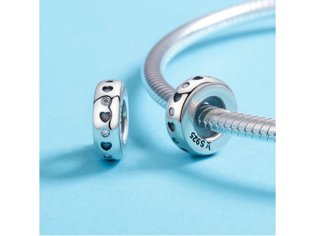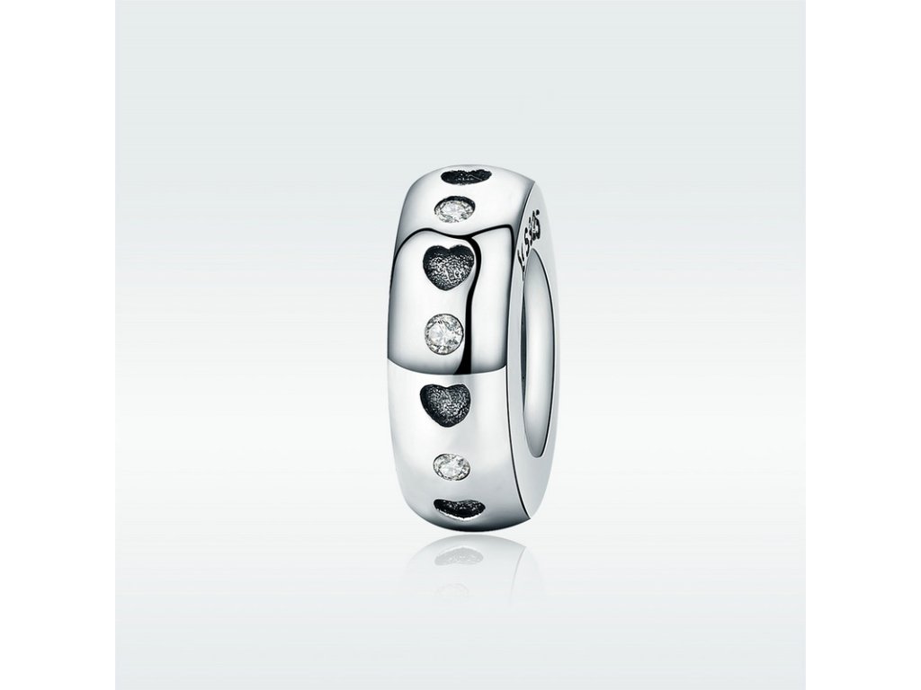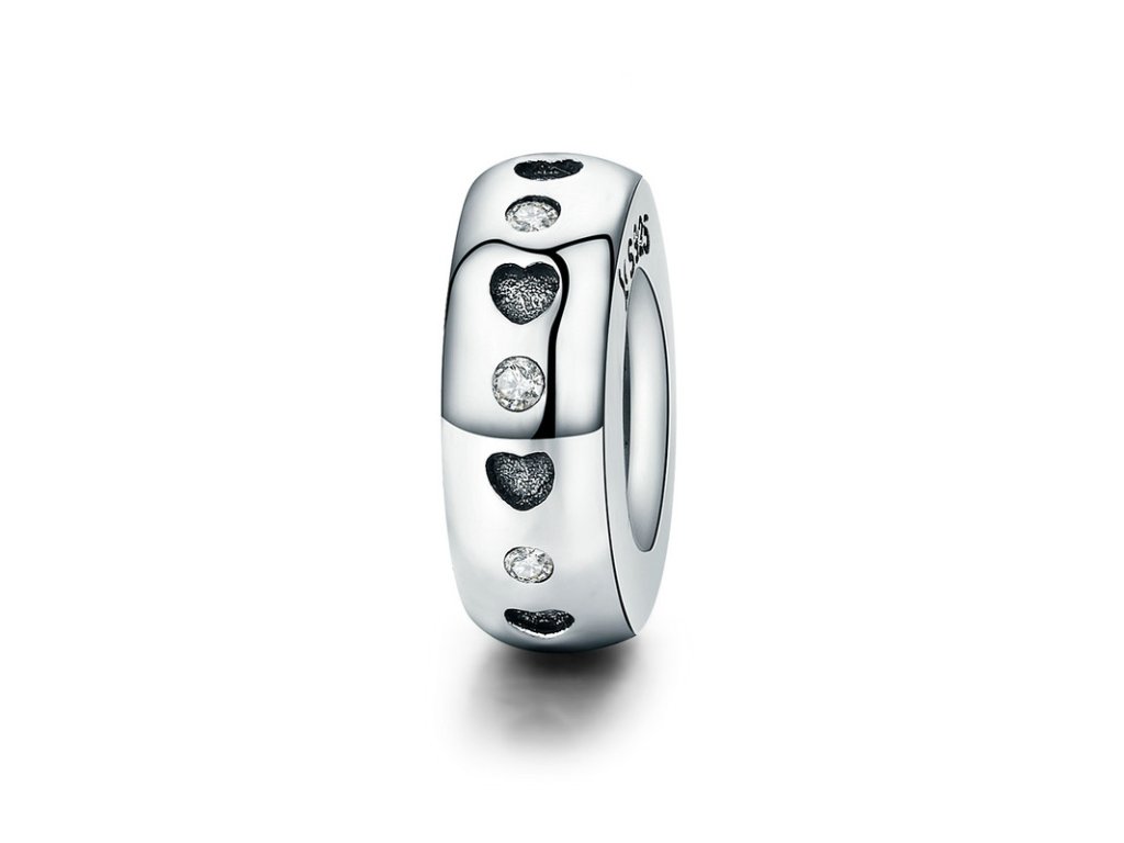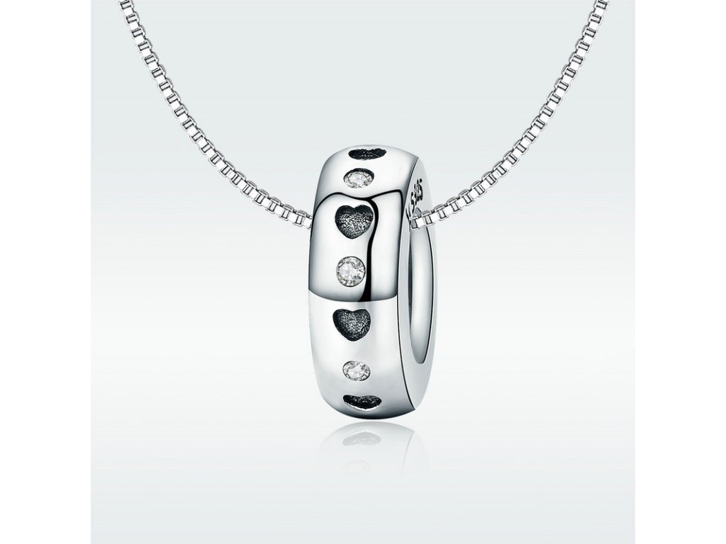 Luxusný a prepracovaný prívesok alebo spacer zdobený krásnymi srdiečkami a trblietavými čírymi zirkónmi.