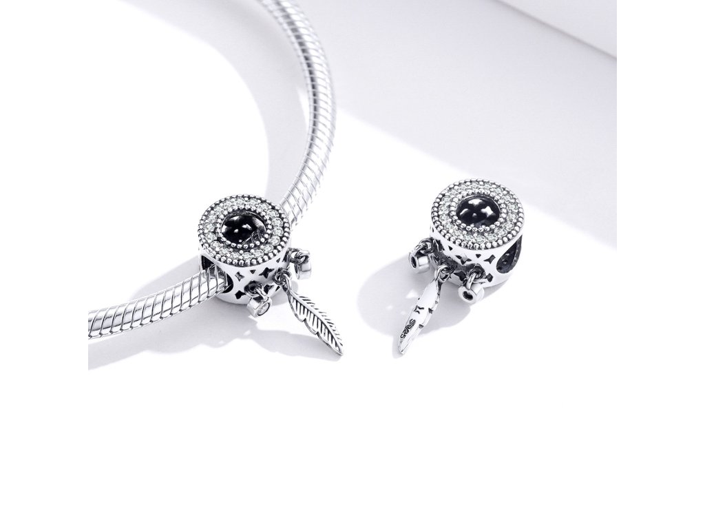 - Strieborný prívesok v dizajne Spirituálneho lapača snov zdobeného smaltom, čírymi kameňmi v podobe zirkónov a ručne vyrezávanými hviezdy po stranách. Lapač snov zachytí nočné mory. Podľa legendy lapač zachytí zlé sny a prvý ranný lúč ich zničí. Originálny design prívesku, kvalitné spracovanie a materiál, ručne dohotovené.