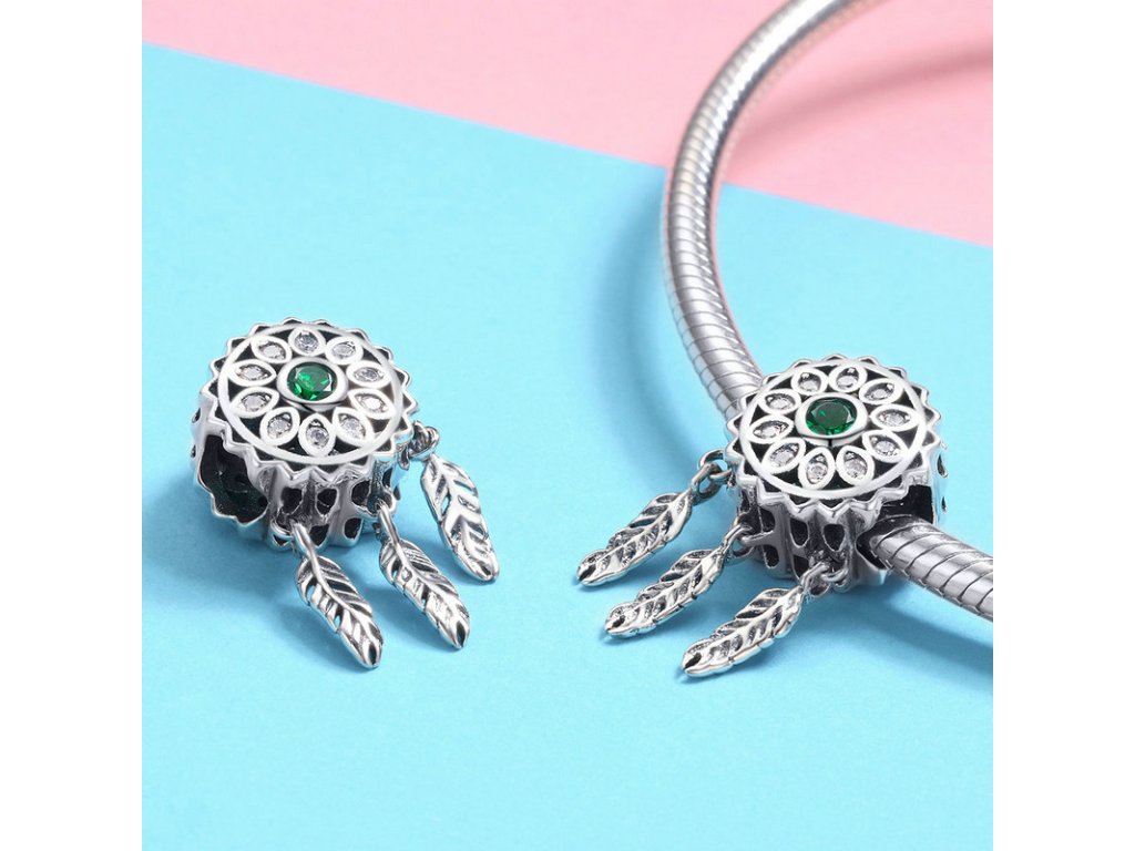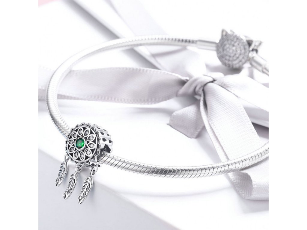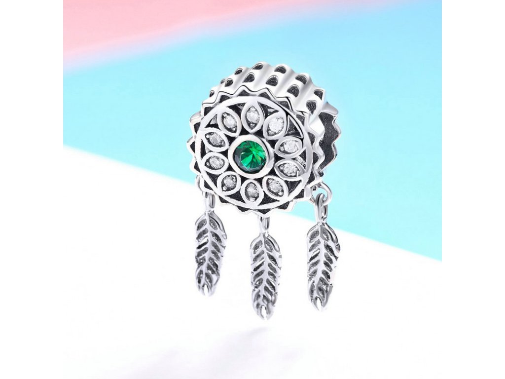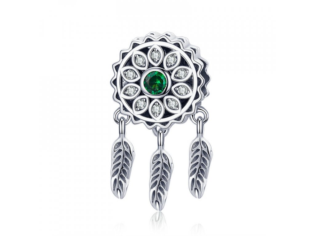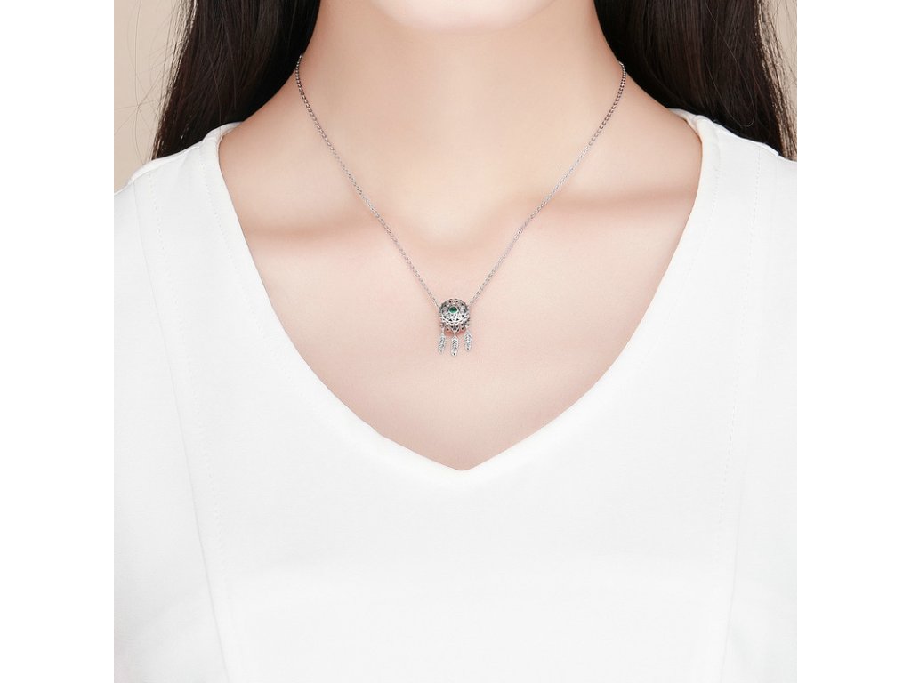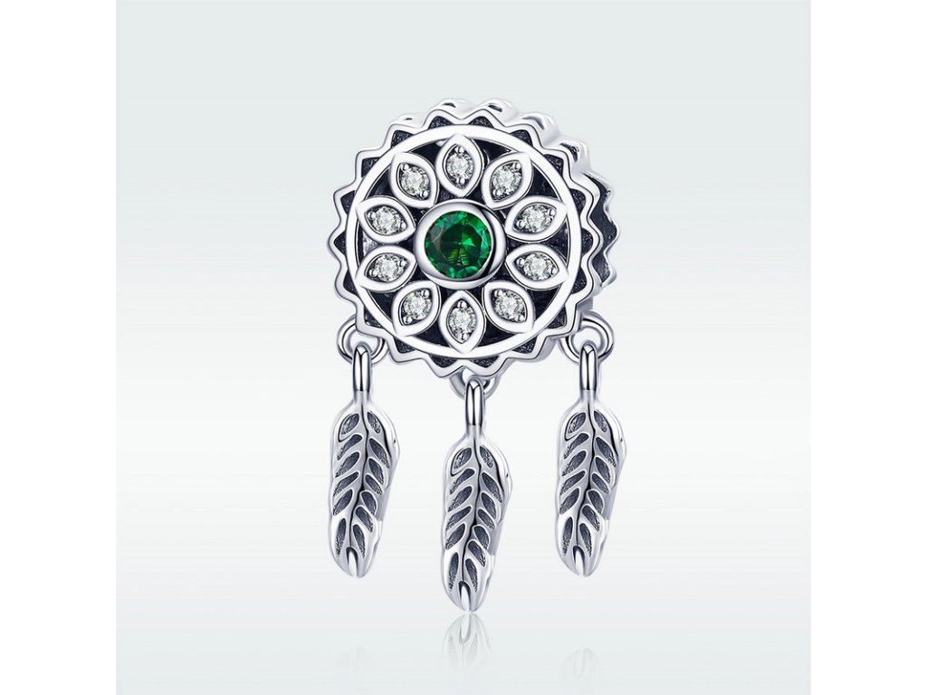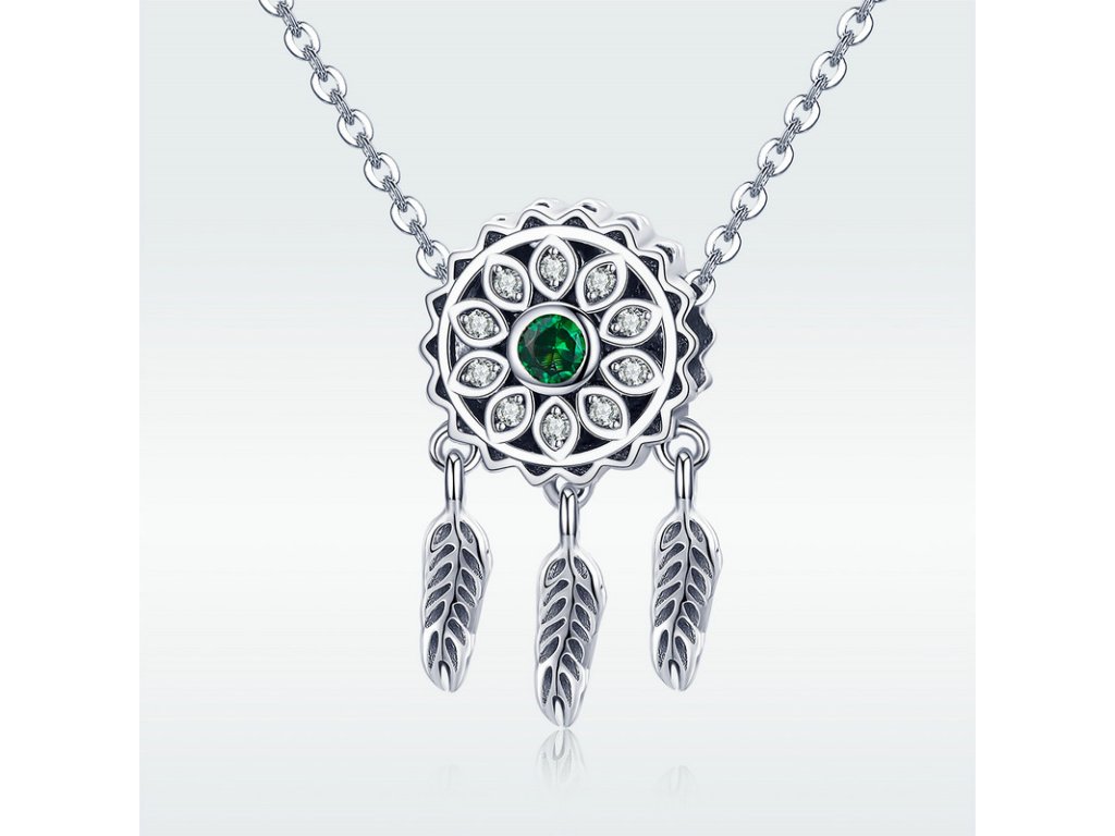 Luxusný a prepracovaný strieborný prívesok v dizajne spirituálneho lapača snov zdobený zirkónmi.