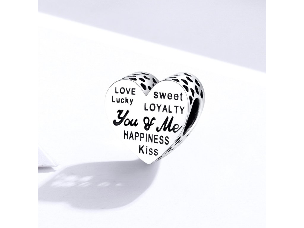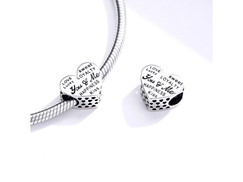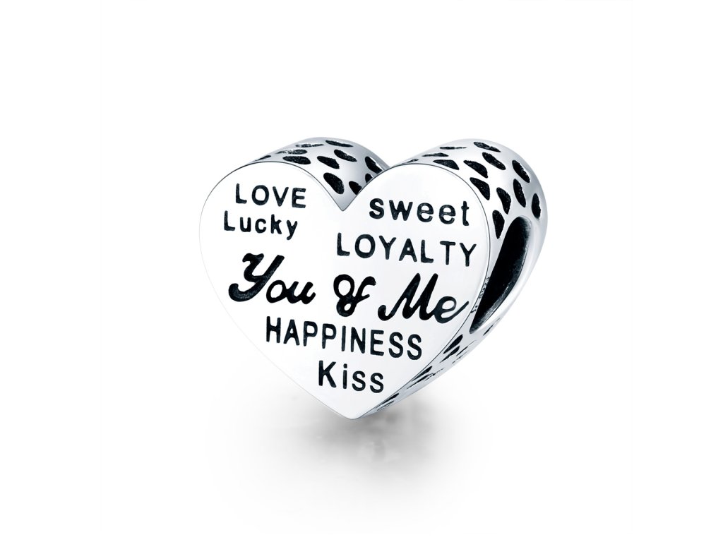 - Strieborný prepracovaný prívesok v dizajne srdca You and Me v preklade "Ty a ja" zdobeného anglickými milovanými nápismi a ručne vyrezávanými srdiečkami po stranách. Originálny design prívesku, kvalitné spracovanie a materiál, ručne dohotovené.
