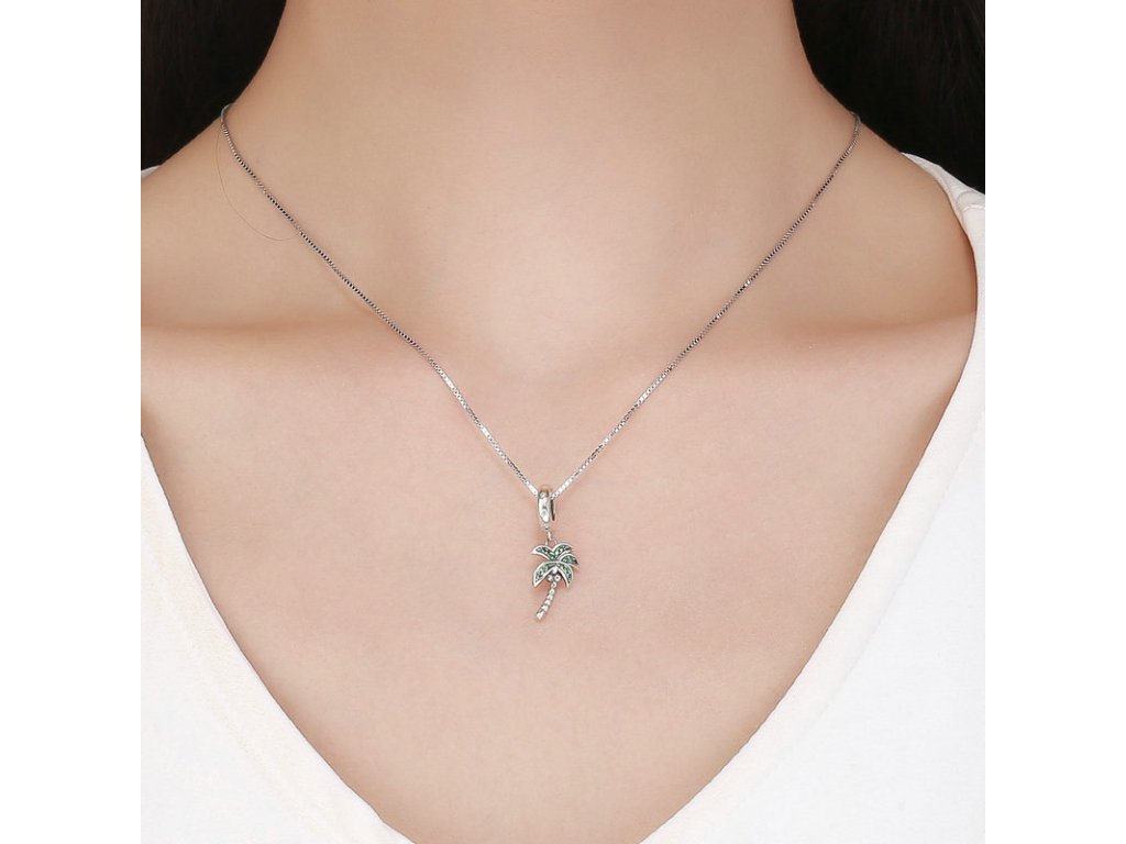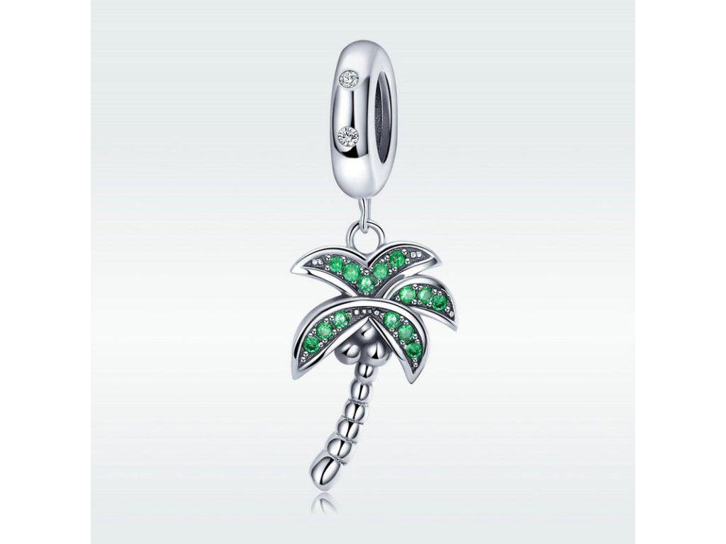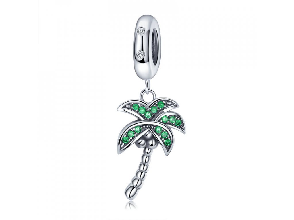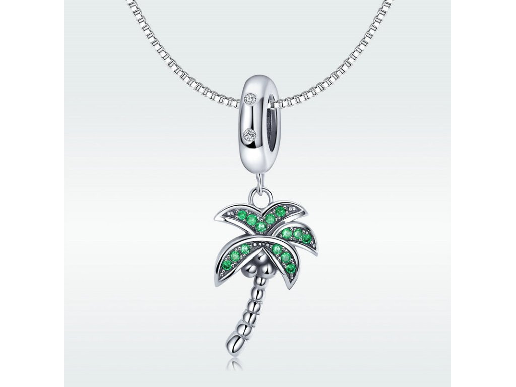 Luxusný a prepracovaný visiaci prívesok v dizajne zelenej palmy obohatenej ručne posádzanými trblietavými zirkónmi.