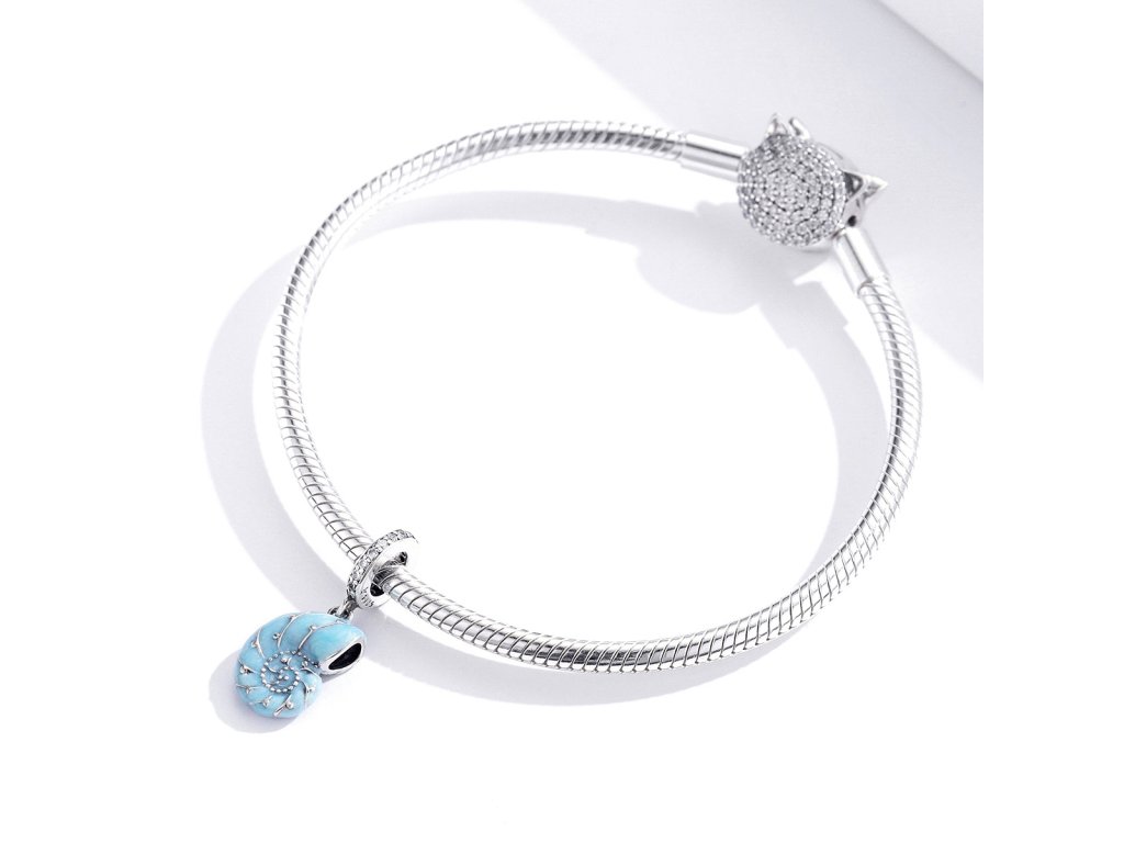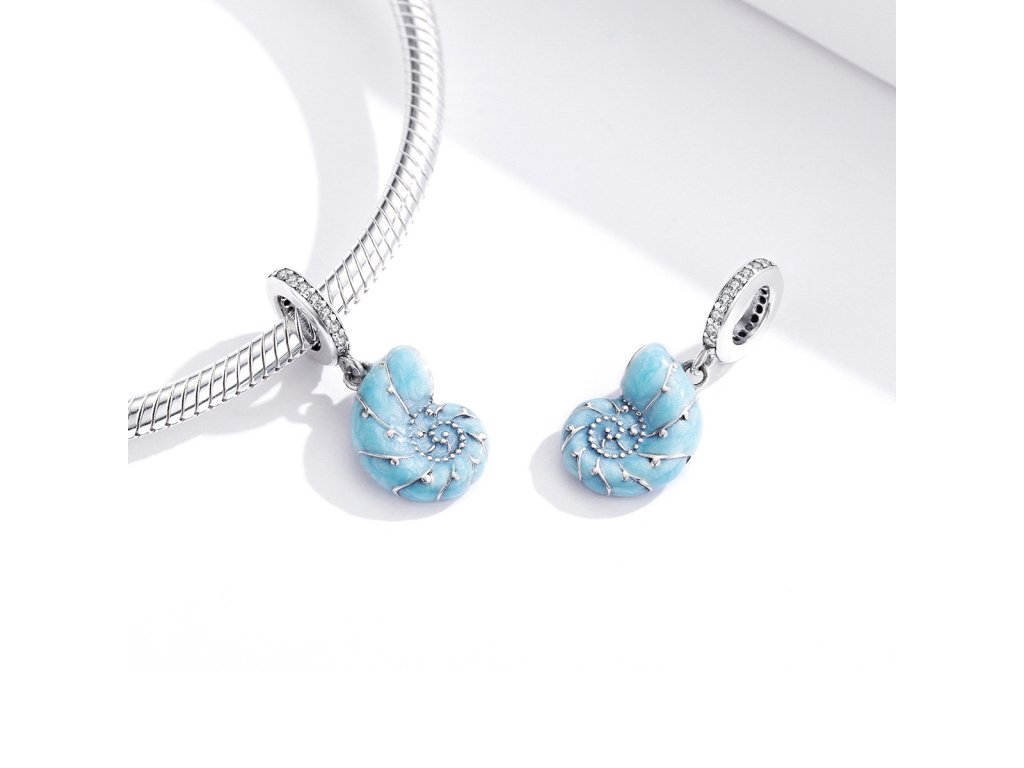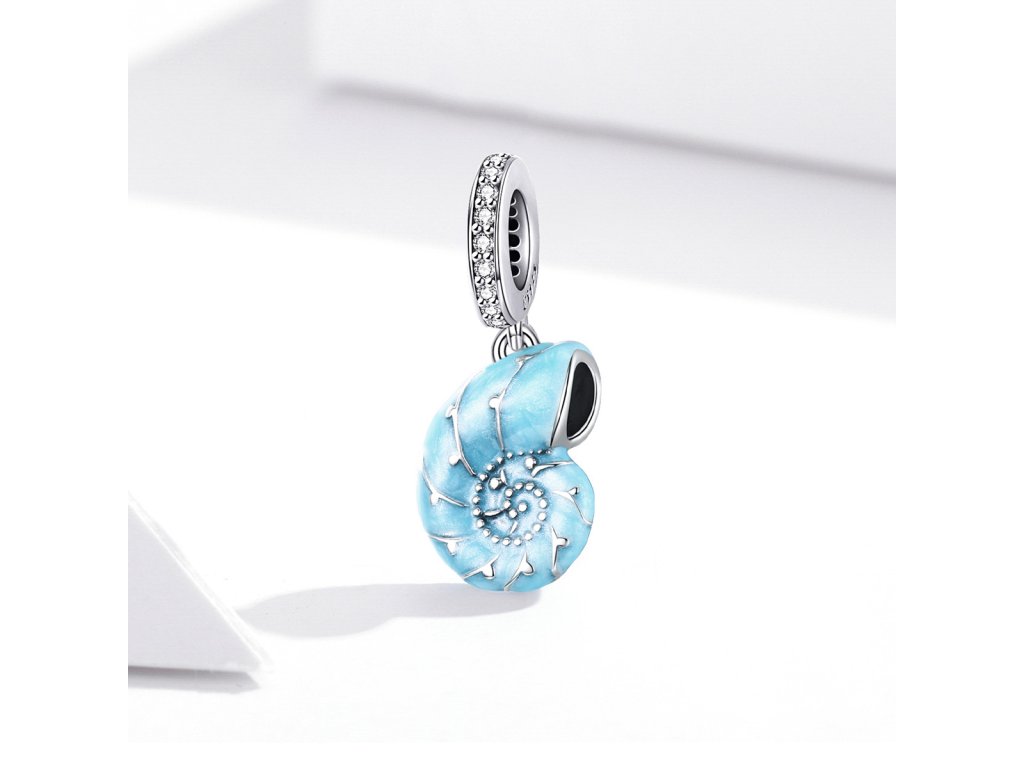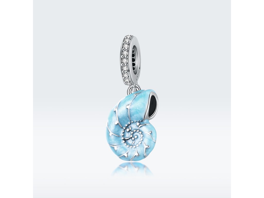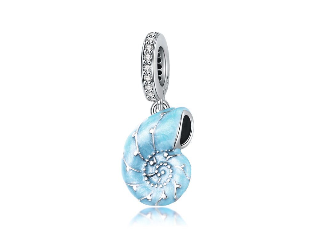 - Strieborný visiaci prívesok v dizajne modrej lastúry zdobenej čírymi zirkónmi a ručne nanášanou trblietavou glazúrou. Originálny design prívesku, kvalitné spracovanie a materiál, ručne dohotovené.