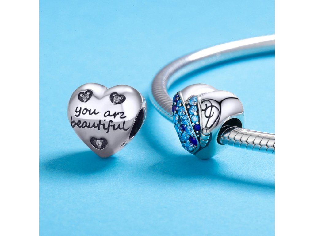 Luxusný a prepracovaný prívesok v tvare srdca zdobeného motýlikom s ručne posádzanými trblietavými zirkónmi. Zadná strana prívesku disponuje srdiečkami s čírymi zirkónmi a anglickým nápisom "You are beautiful" v preklade "Si krásna". Obdarujte seba alebo svojich blízkych týmto strieborným kúzlom. Originálny design prívesku značky Royal Fashion, luxusné spracovanie, kvalitný materiál, ručné práce. Prívesky sú plne kompatibilné aj s náramkami iných značiek. DODÁVAME BALENÉ V DARČEKOVEJ KRABIČKE - ZADARMO !*