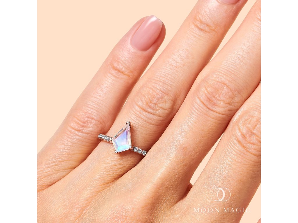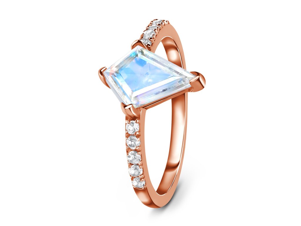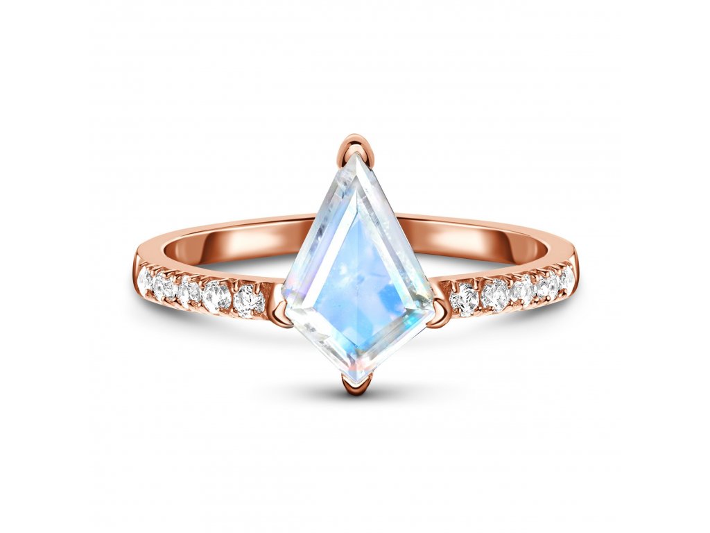 Royal Fashion prsteň Diamond s drahokamom moonstonom 14k ružové zlato Vermeil