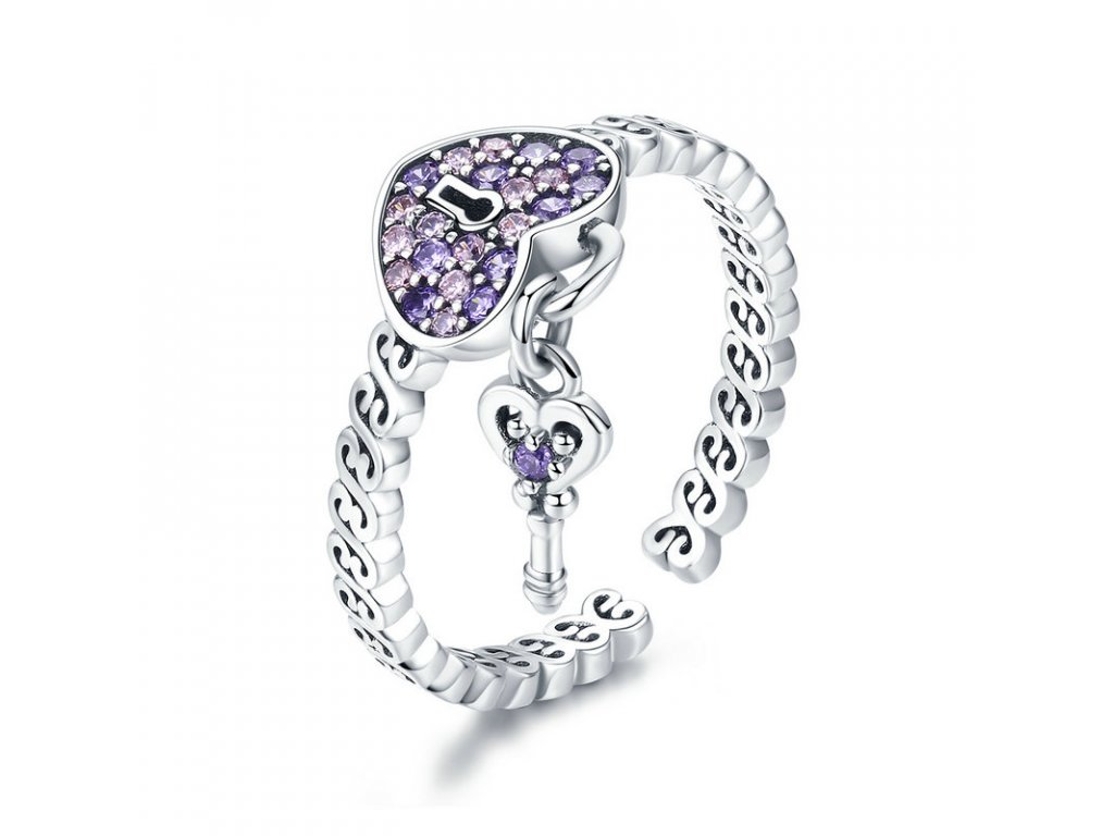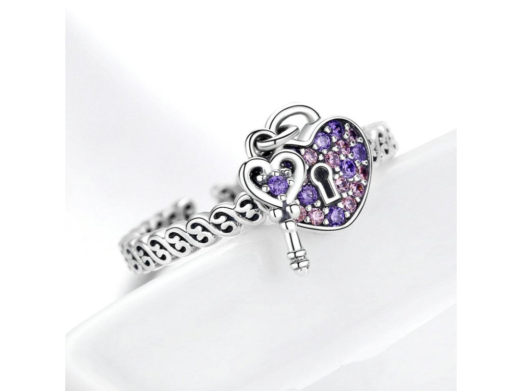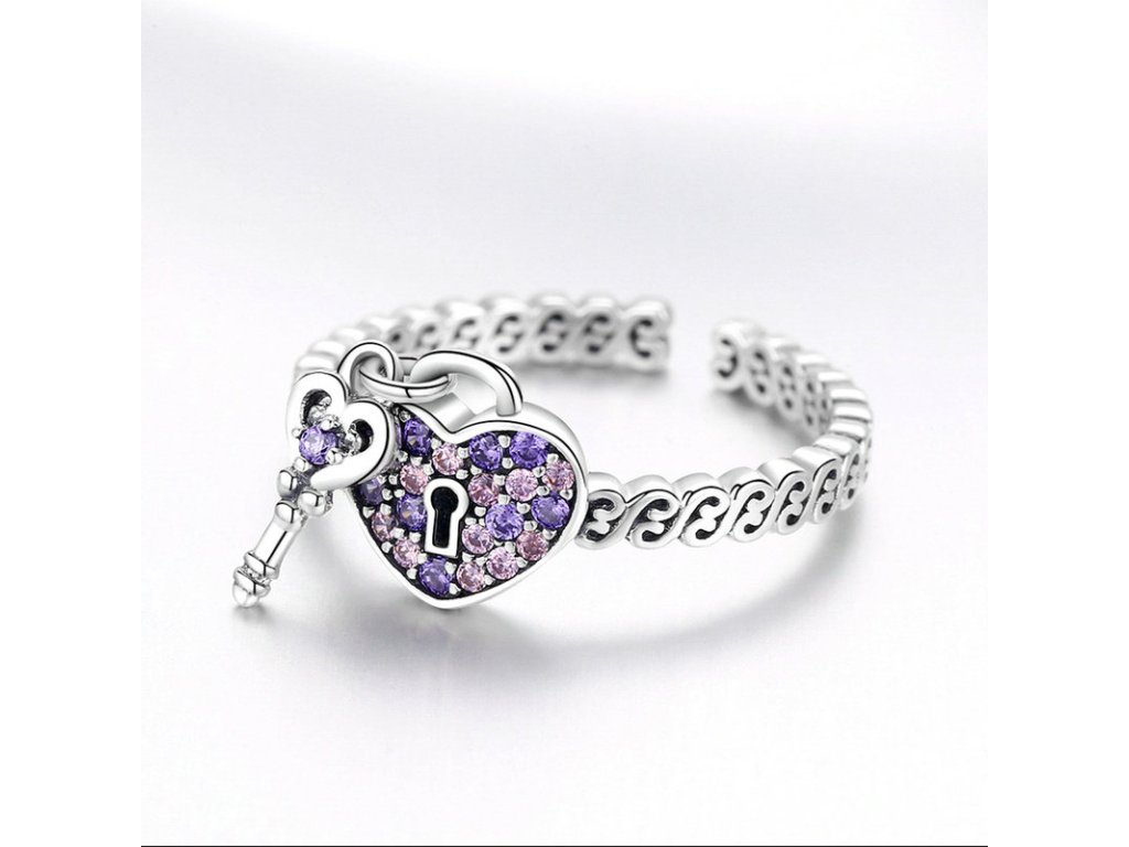Luxusný strieborný prsteň v dizajne kľúč k môjmu srdcu s ručne posádzanými trblietavými zirkónmi. Originálny dizajn prsteňa, kvalitné spracovanie a materiál, ručne dohotovené.