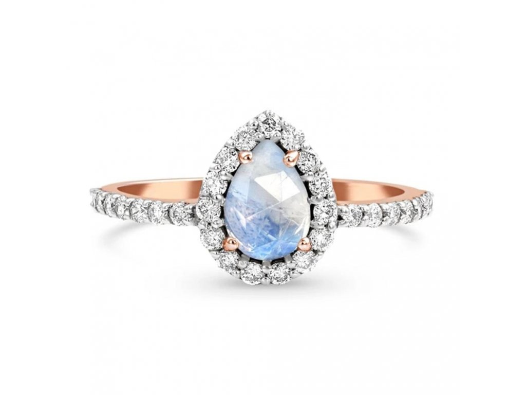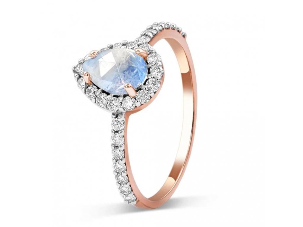 Royal Fashion prsteň Kvapka s drahokamom Moonstonom 14k ružové zlato Vermeil