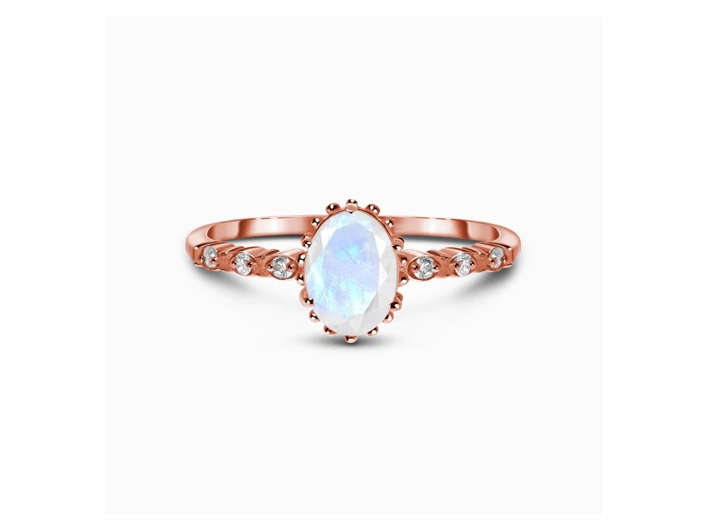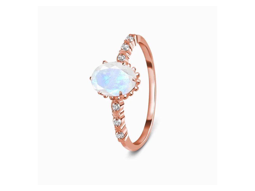 Royal Fashion prsteň Nad mraky 14k ružové zlato Vermeil s drahokamom Moonstonom a drahokamami topazy