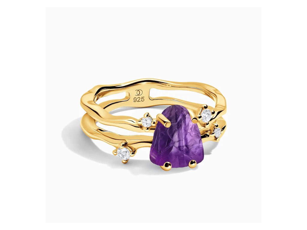 Royal Fashion prsteň Pozitíva 18k zlato Vermeil s drahokamom ametystom a bielymi zafírmi