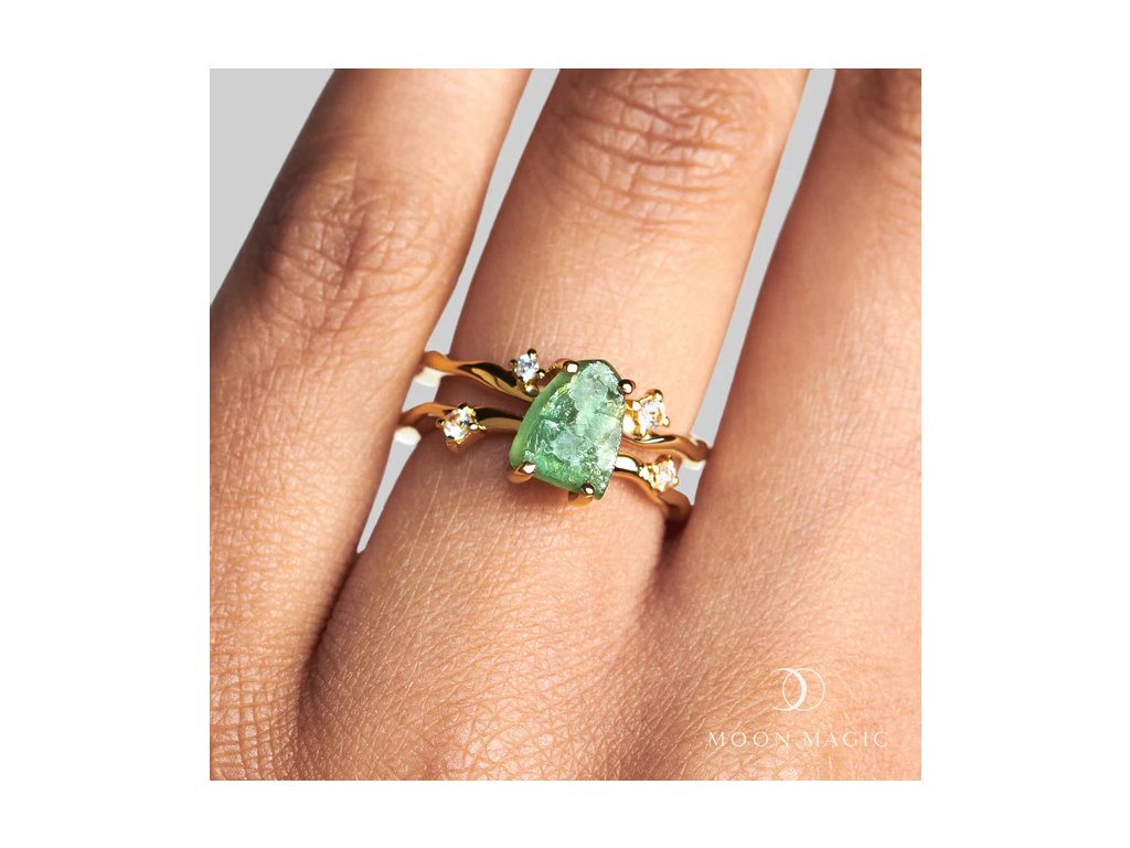 - Jedinečný prsteň s jedinečným štýlom drahokamov, náš ručne vyrobený prsteň Pozitíva, bude nádychom pokoja, ktorý ste hľadali. Zaujímavý dvojitý opasok je dokonalým základom pre nápadný, neopracovaný, autentický zelený apatit a iskra pravého bieleho zafíru dopĺňa tento úžasný kúsok. Váš prsteň bude jediný svojho druhu, čo z neho urobí skutočne osobný poklad.