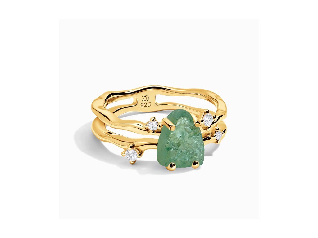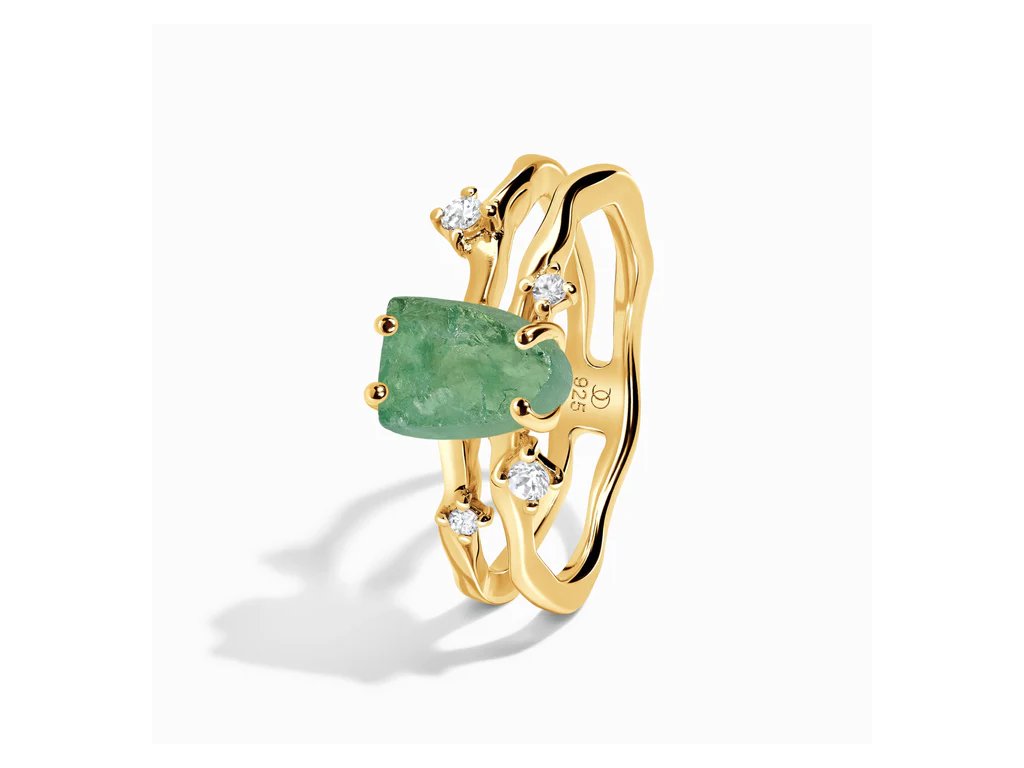 Royal Fashion prsteň Pozitíva 18k zlato Vermeil s drahokamom zeleným apatitom a bielymi zafírmi