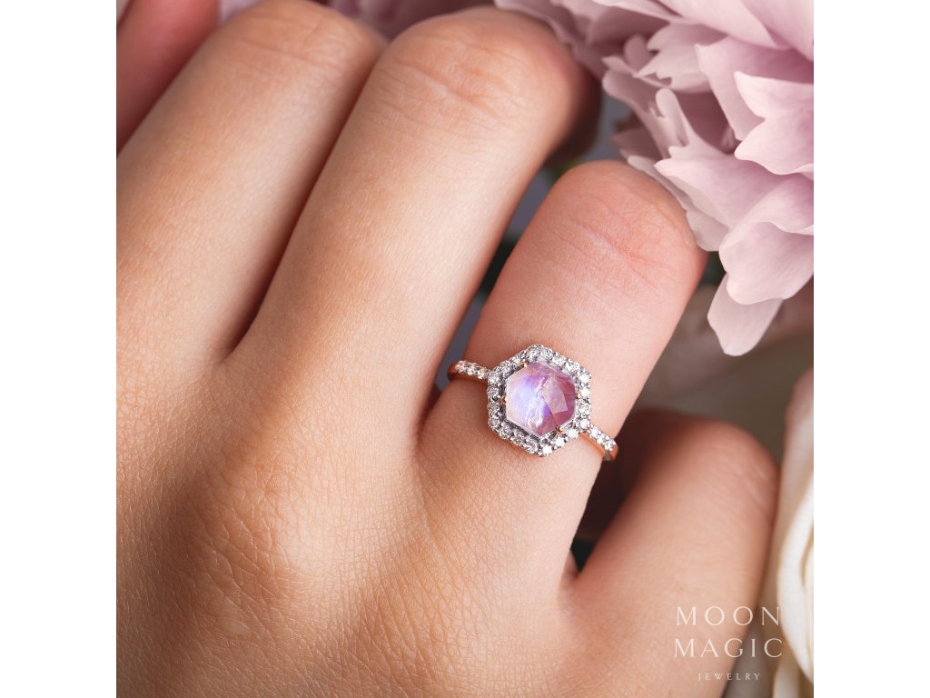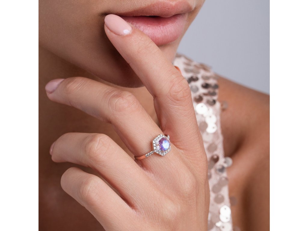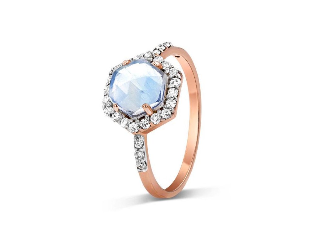 Royal Fashion prsteň Queen s drahokamom moonstonom 14k ružové zlato Vermeil