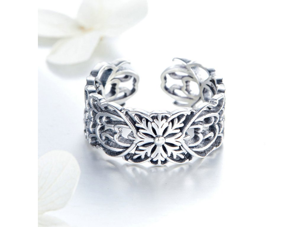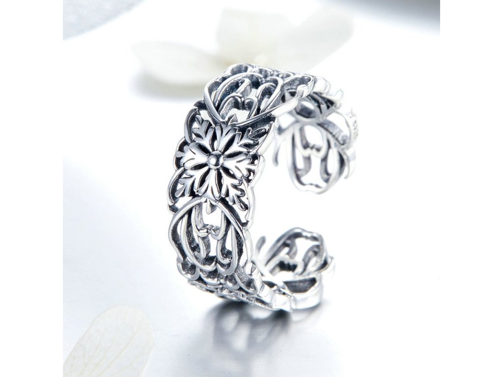 Krásny a prepracovaný strieborný prsteň v designe vintage kvety. Originálny dizajn prsteňa, kvalitné spracovanie a materiál, ručne dohotovené.