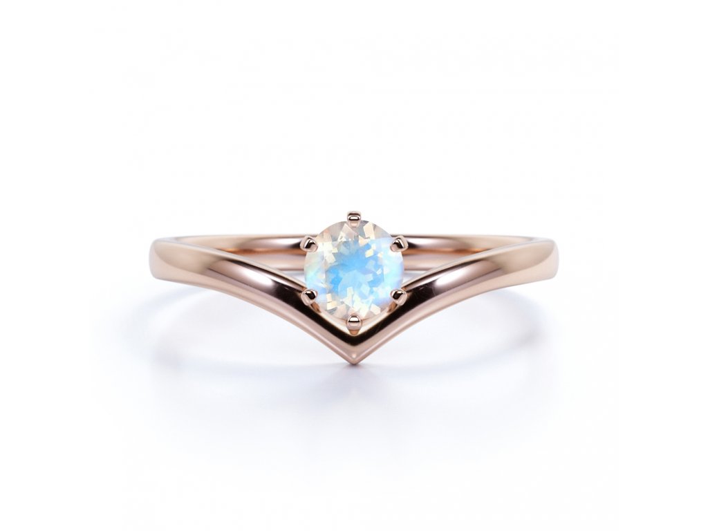 Royal Fashion prsteň Wave s drahokamom moonstonom 14k ružové zlato Vermeil