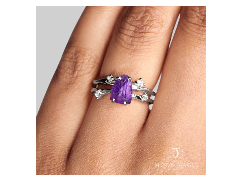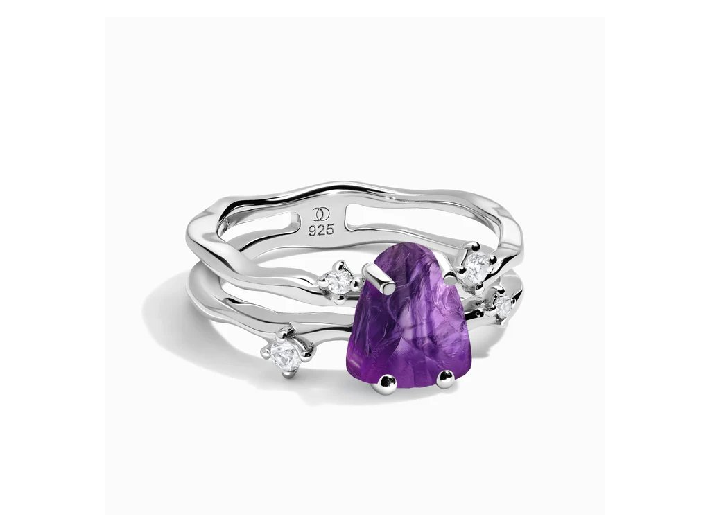 - Jedinečný prsteň s jedinečným štýlom drahokamov, náš ručne vyrobený prsteň Pozitíva, bude nádychom pokoja, ktorý ste hľadali. Zaujímavý dvojitý opasok je dokonalým základom pre nápadný, neopracovaný, autentický ametyst a iskra pravého bieleho zafíru dopĺňa tento úžasný kúsok. Váš prsteň bude jediný svojho druhu, čo z neho urobí skutočne osobný poklad.