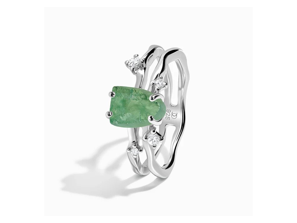Royal Fashion rhodiovaný prsteň Pozitíva s drahokamom zeleným apatitom a bielymi zafírmi