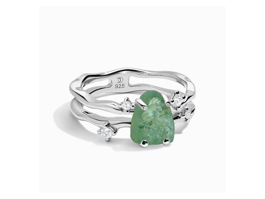 - striebro 925/1000, ródium, zelený apatit, drahokamy biele zafíry.