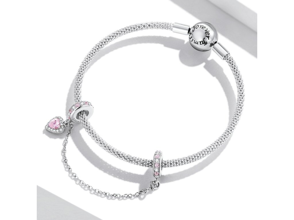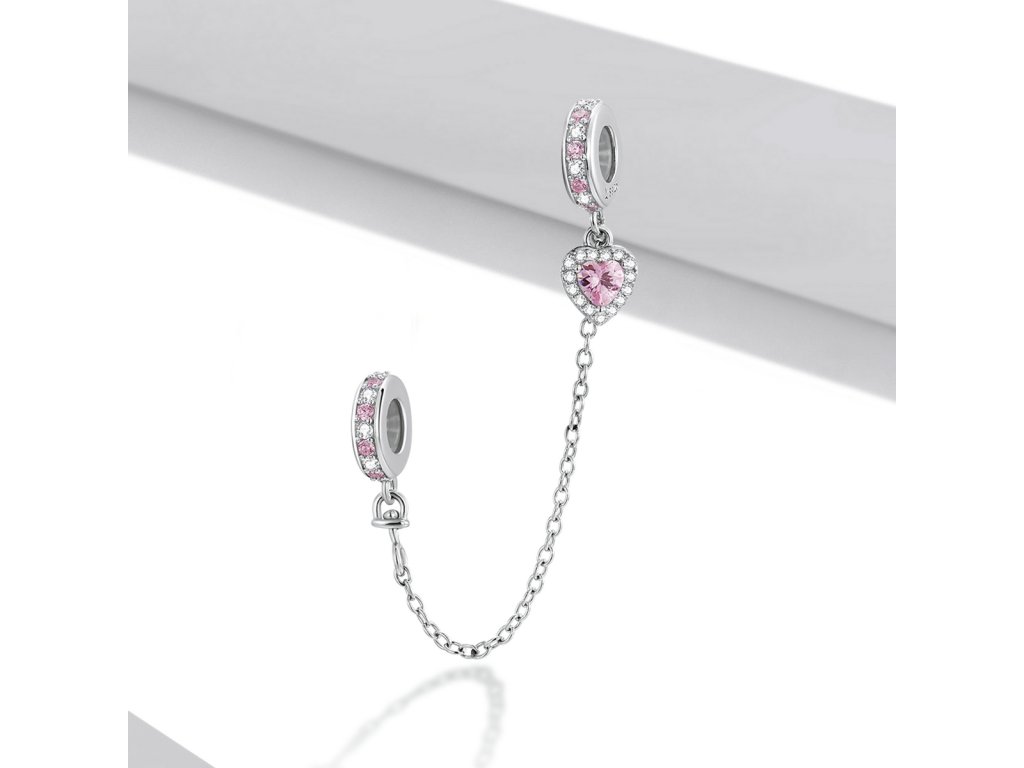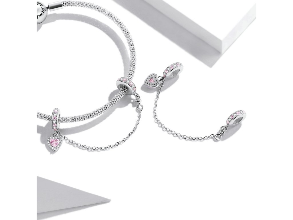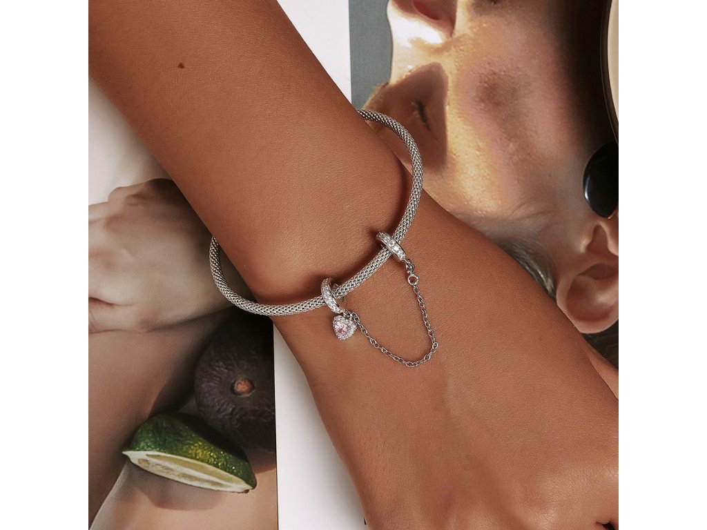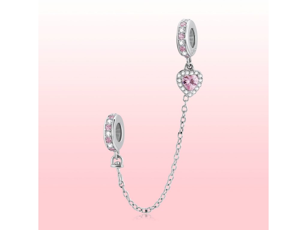 - Strieborný prívesok / bezpečnostný retiazka na náramok zdobená čírymi a ružovými třpytivými zirkonmi. Originálny design prívesku, kvalitné spracovanie a materiál, ručne dohotovené.