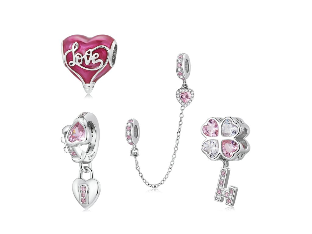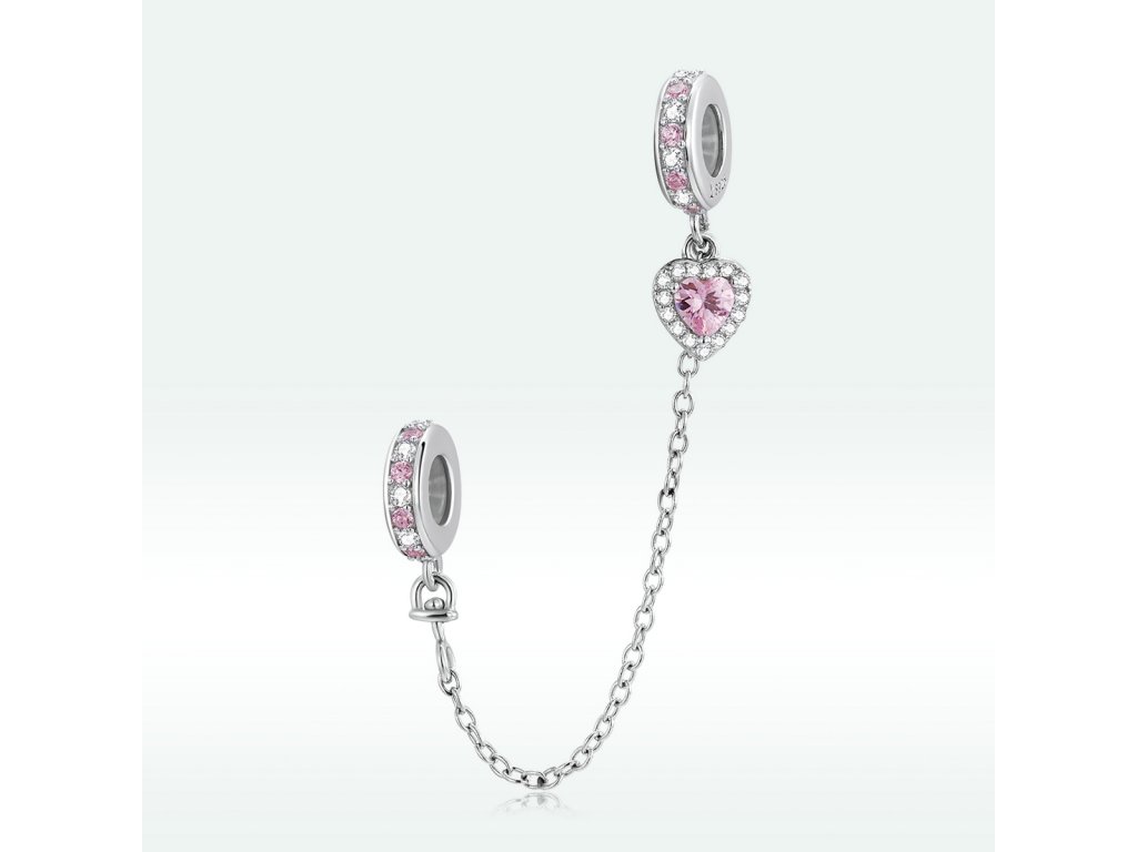 Royal Fashion striborný prívesok bezpečnostný retiaz Ružové srdce