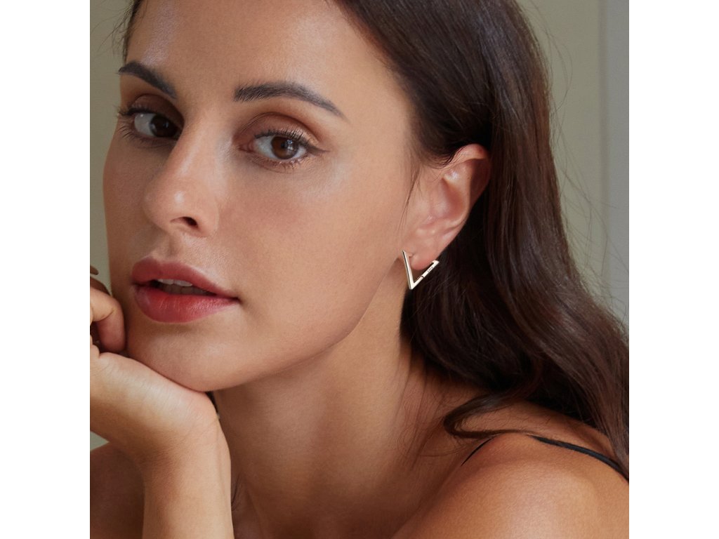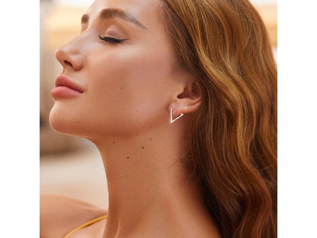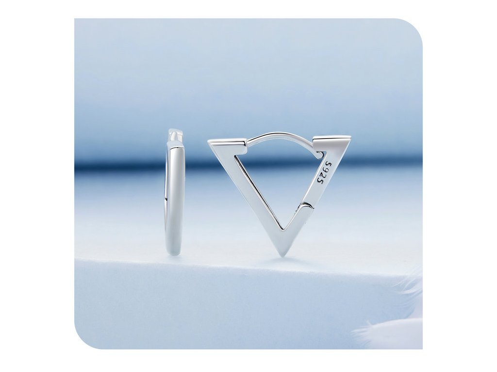- Strieborné náušnice v tvare trojuholníka veľkosti 16 mm. Originálny design náušníc, kvalitné spracovanie a materiál, ručne dohotovené.