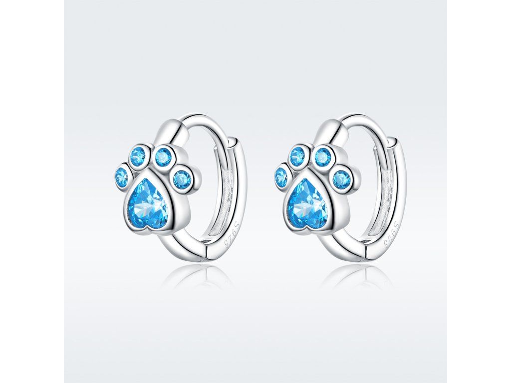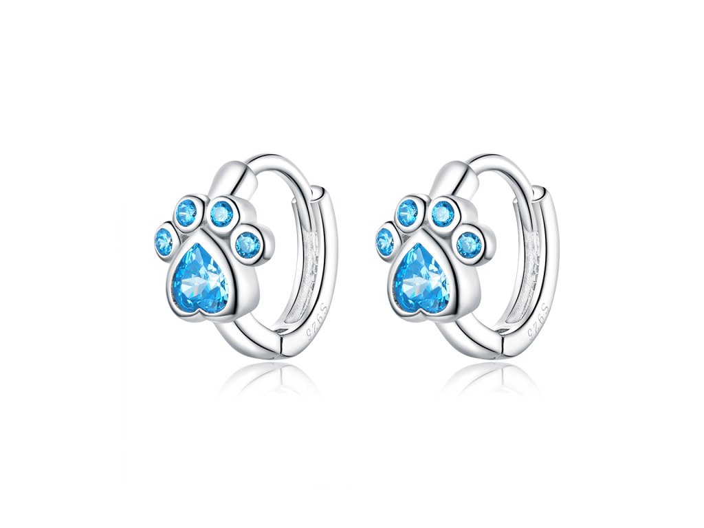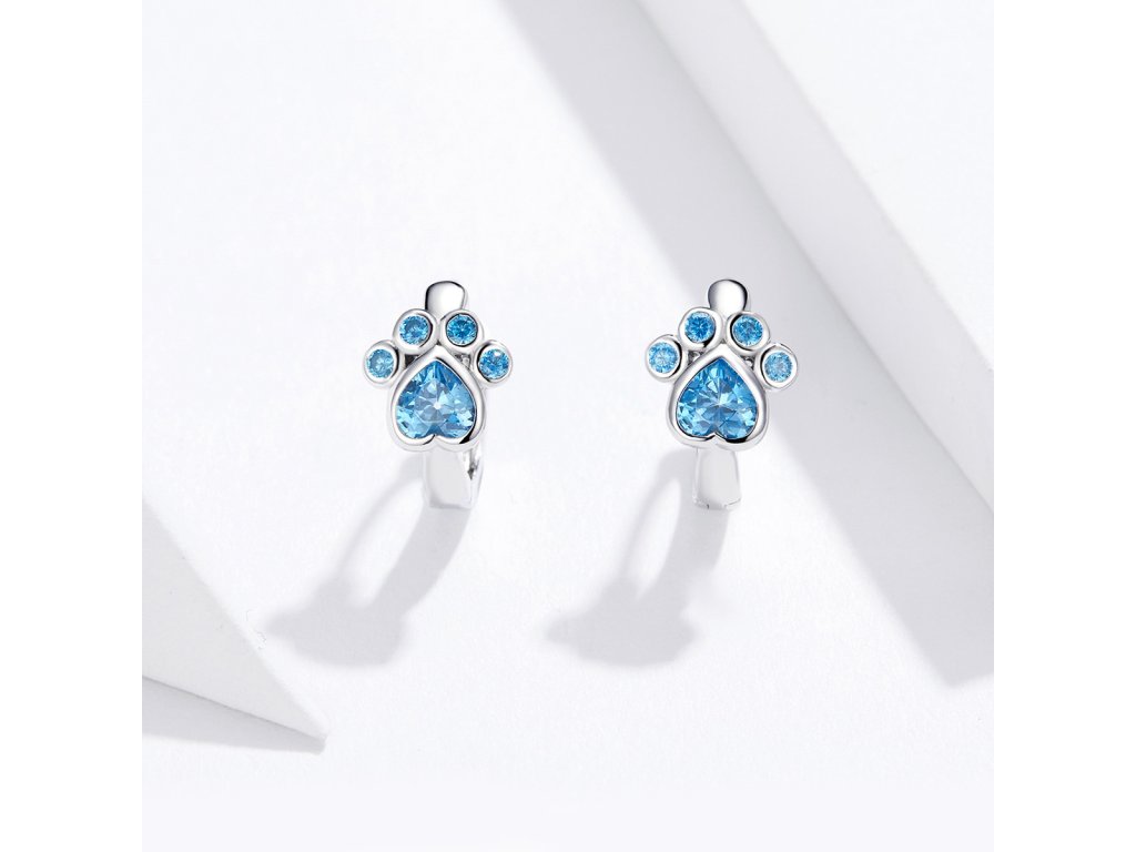 - Strieborné náušnice v dizajne packy zdobeného ručne posádzanými modrými trblietavými zirkónmi. Originálny design náušníc, kvalitné spracovanie a materiál, ručne dohotovené.