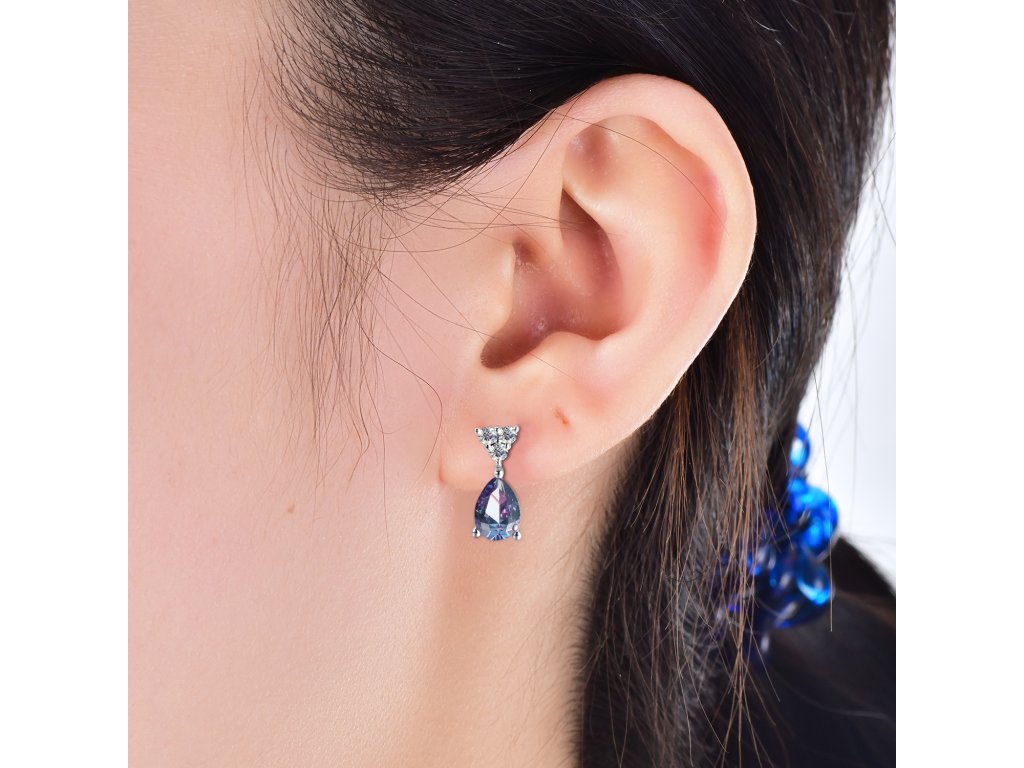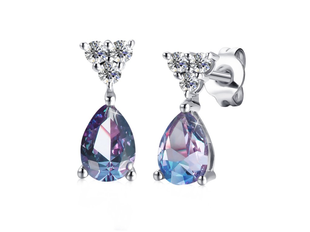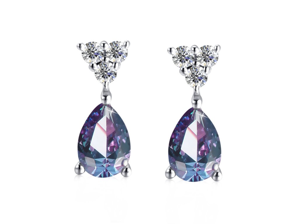 - Hypoalergenie visiace strieborné náušnice pozlátené 18 karátovým bielym zlatom zdobené Alexandritom a zirkónmi. Originálny design náušníc, kvalitné spracovanie a materiál, ručne dohotovené.