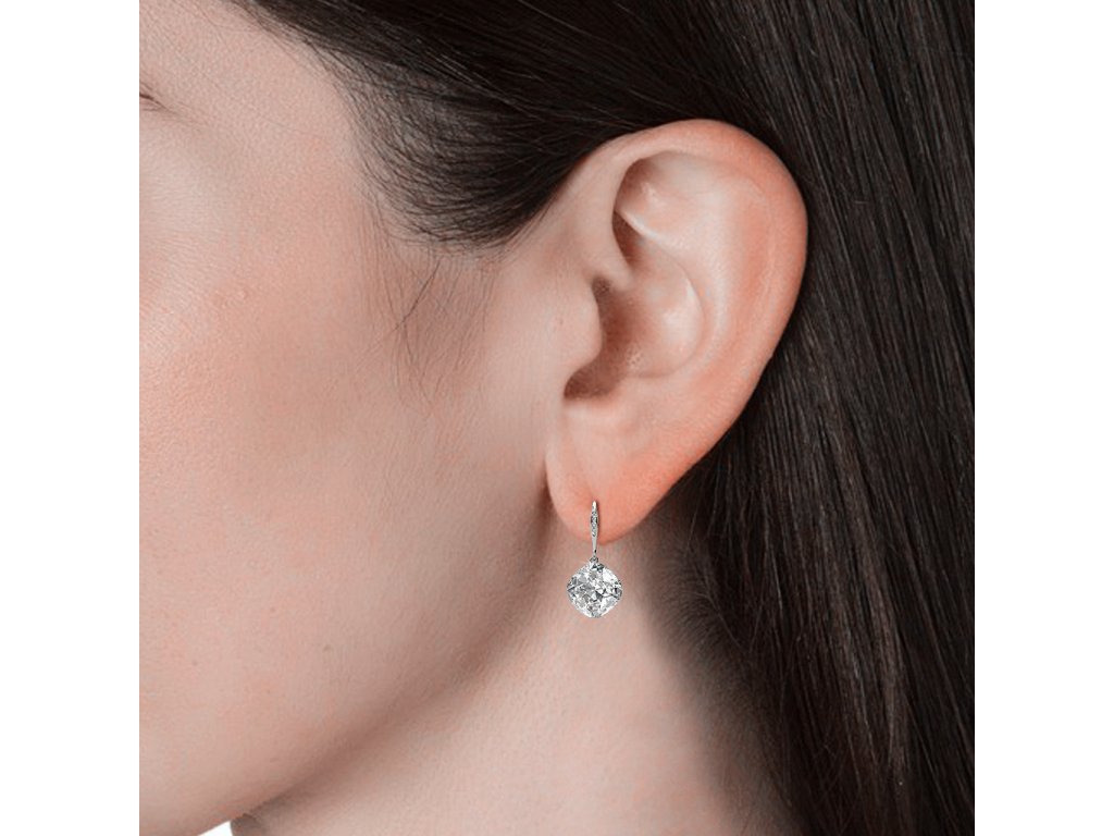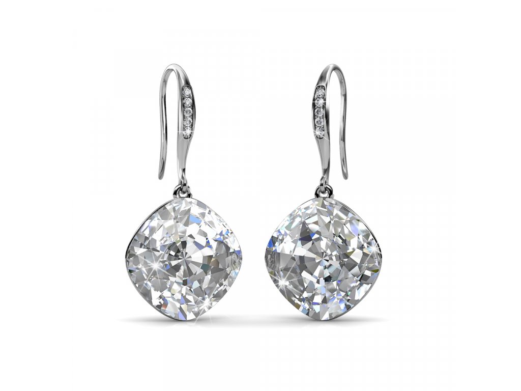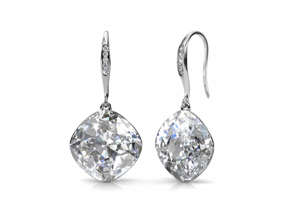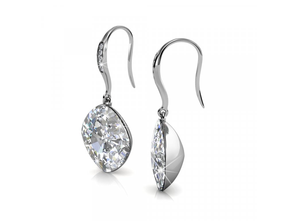 - Strieborné visiace náušnice pozlátené 18 karátovým bielym zlatom zdobené kryštálmi Swarovski. Originálny design náušníc, kvalitné spracovanie a materiál, ručne dohotovené.