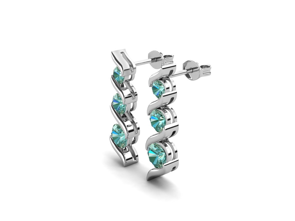 - Strieborné visiace náušnice pozlátené 18 karátovým bielym zlatom zdobené drahokamom zeleným moissanitom. Originálny design náušníc, kvalitné spracovanie a materiál, ručne dohotovené.