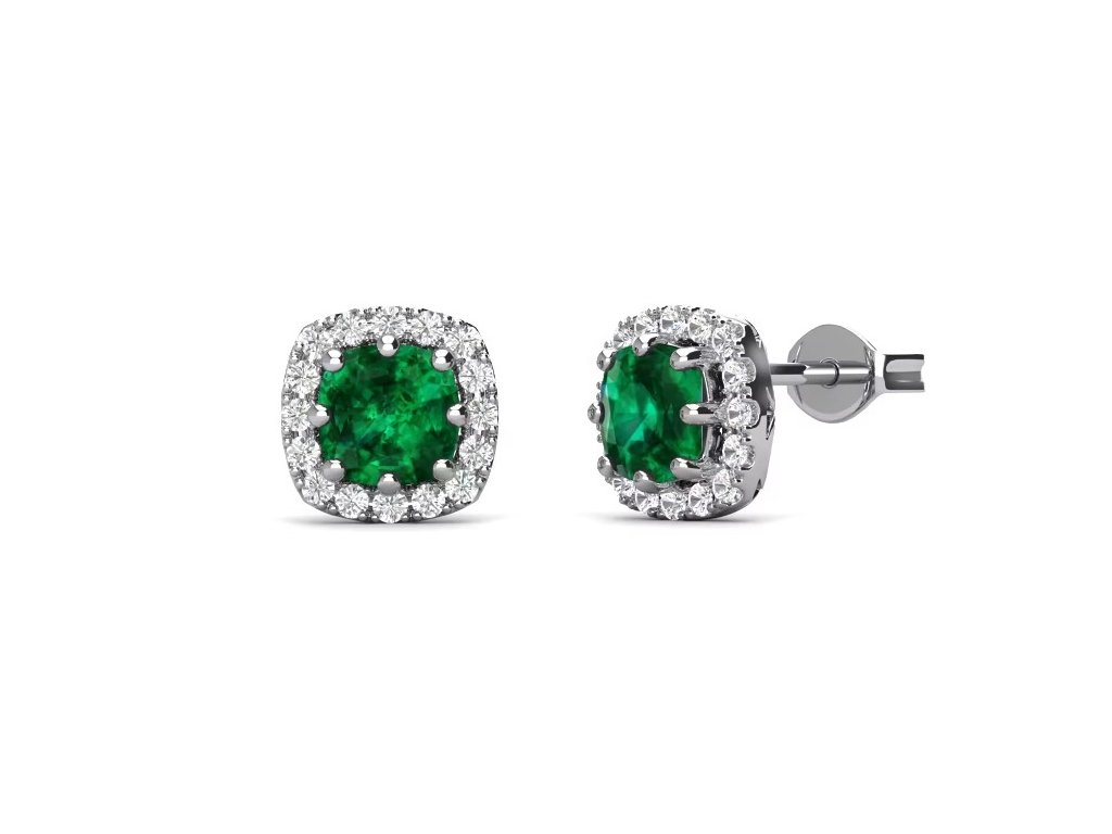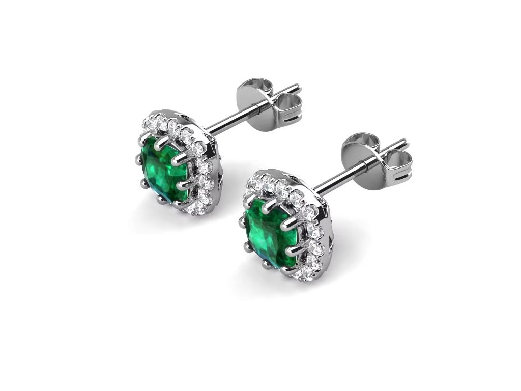 - Strieborné hypoalergénne kôstkové náušnice pozlátené 18k bielym zlatom s drahokamom zeleným zafírom. Originálny design náušníc, kvalitné spracovanie a materiál, ručne dohotovené.