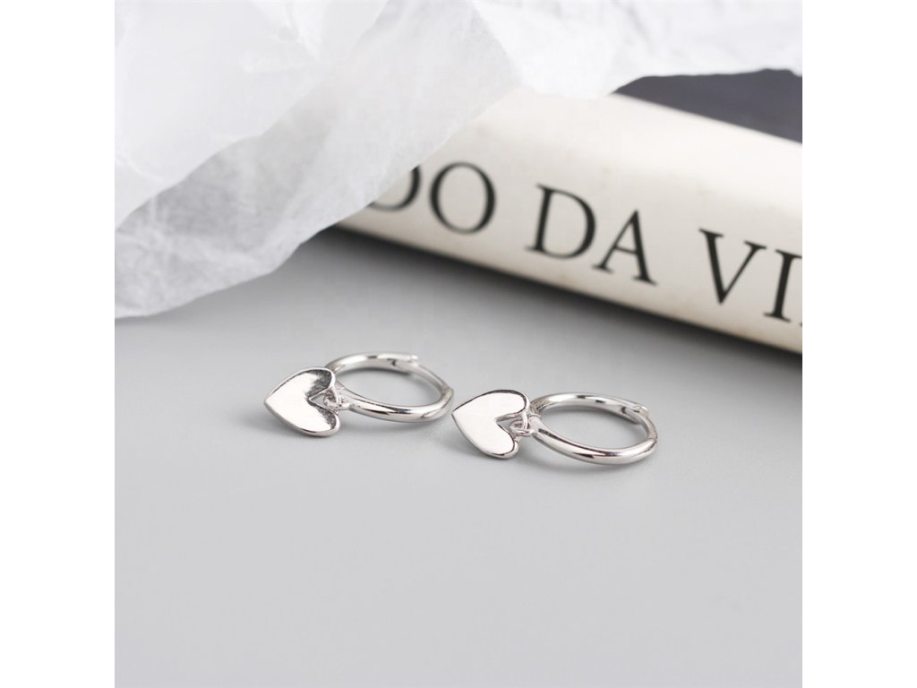 - Strieborné rhodiované visiace náušnice v dizajne leštených milovaných srdiečok. Originálny design náušníc, kvalitné spracovanie a materiál, ručne dohotovené.