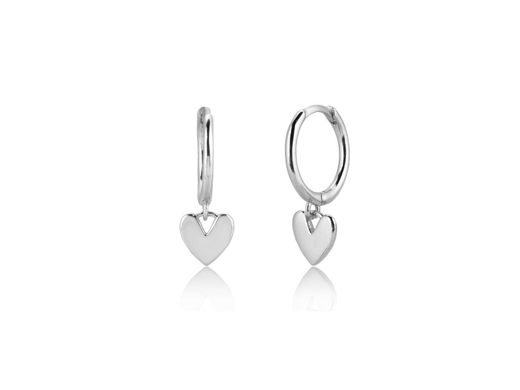 Royal Fashion strieborné rhodiované visiace náušnice Leštené srdce HA-YHE0248-SILVER