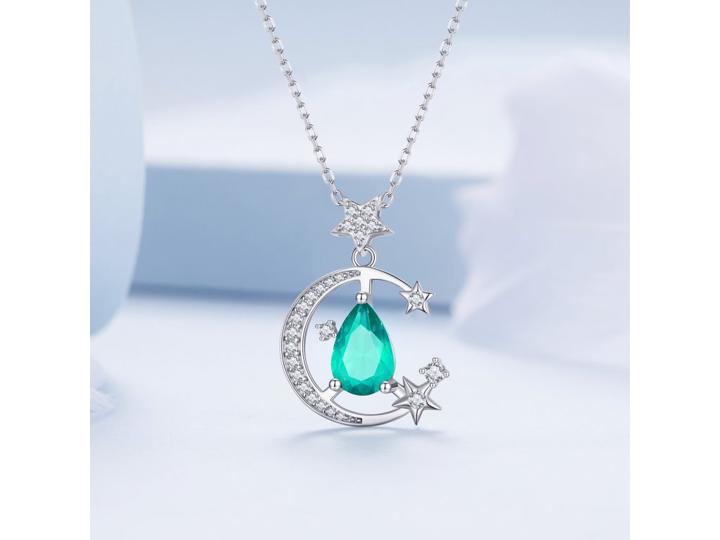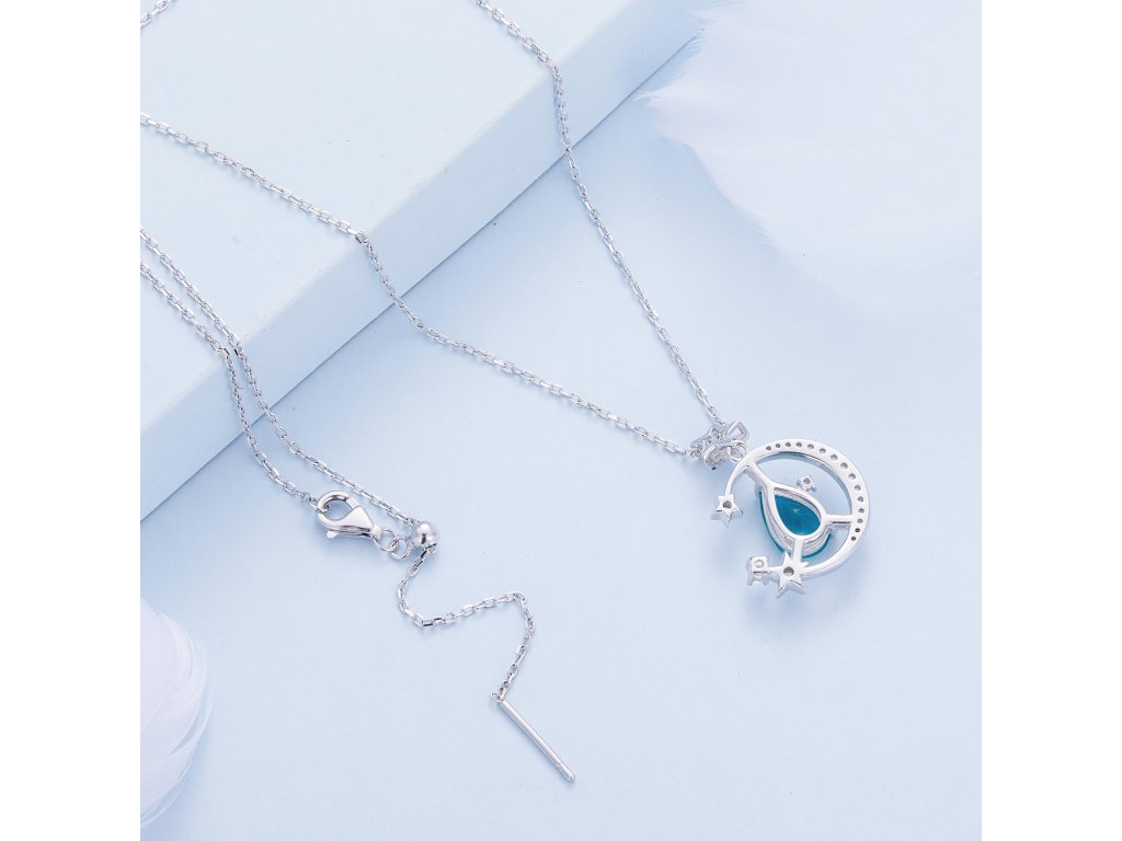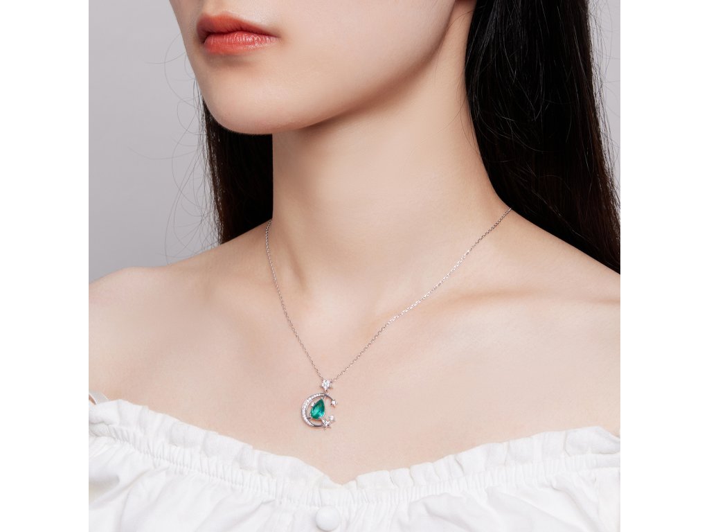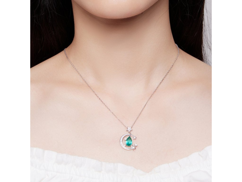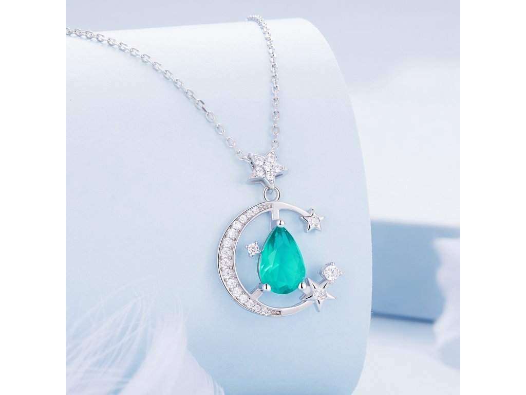 - Strieborný náhrdelník mesačnej žiary vysadený zirkónmi. Originálny dizajn náhrdelníka, kvalitné spracovanie a materiál, ručne dohotovené.