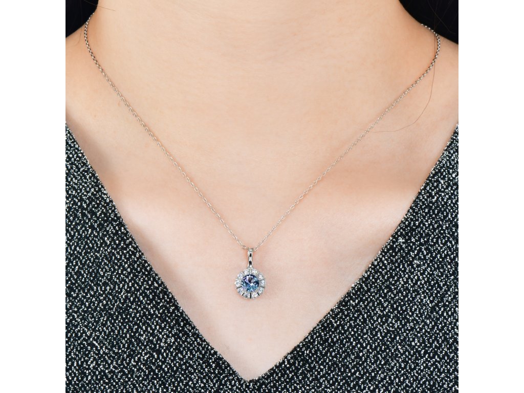 Royal Fashion strieborný náhrdelník pozlátený 18k bielym zlatom Alexandrit