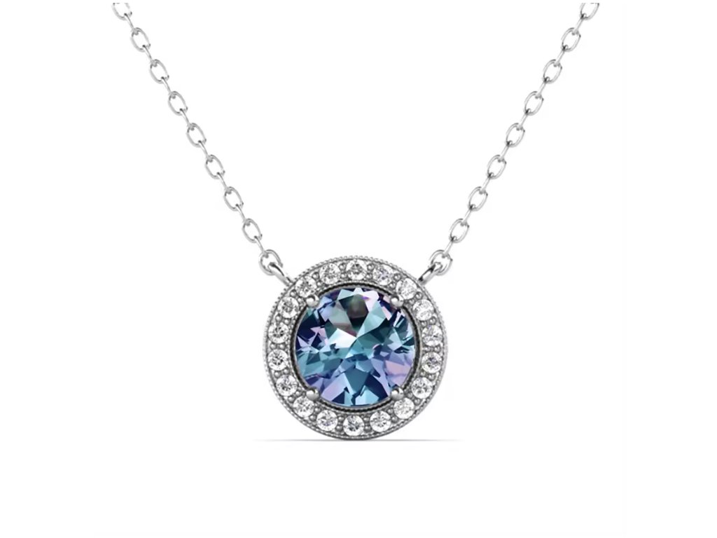 Royal Fashion strieborný náhrdelník pozlátený 18k bielym zlatom Alexandrit