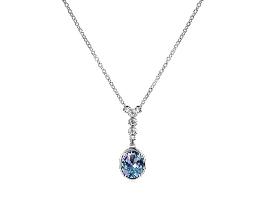 Royal Fashion strieborný náhrdelník pozlátený 18k bielym zlatom Alexandrit